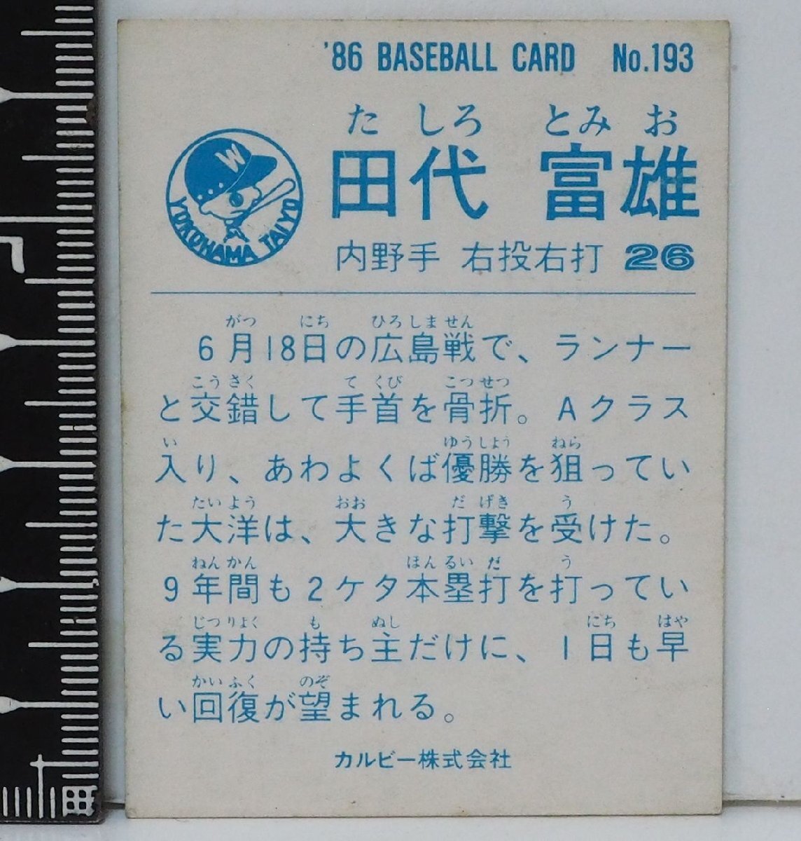 86年 カルビー プロ野球カード No.193【田代 富雄 内野手 横浜大洋ホエールズ】昭和61年 1986年 当時物 Calbee おまけ食玩BASEBALL【中古】