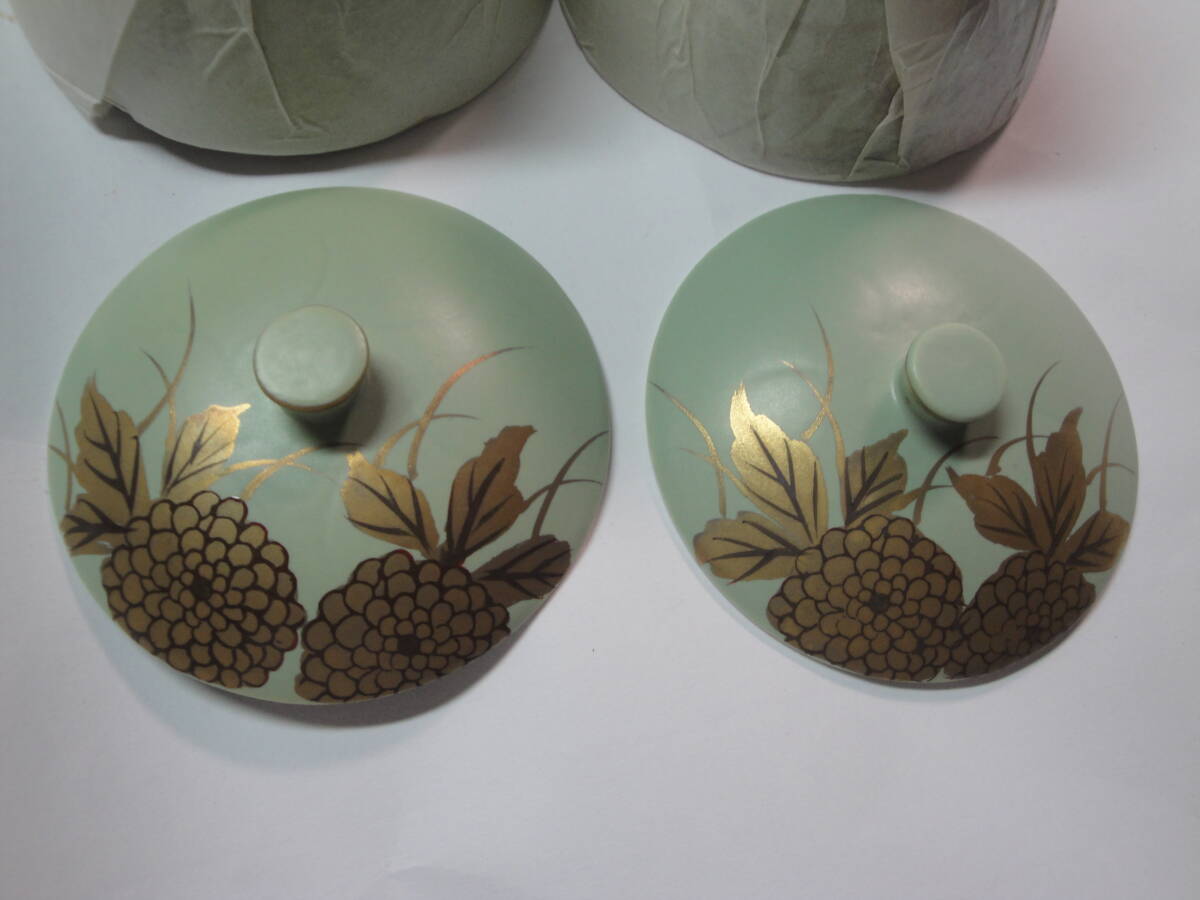 ☆有田焼 天狗谷窯《天狗谷作:草色マット金菊絵珍味入(蓋付・5客)》☆ゆうパック 食器 上品 艶消し技法 手描き インテリア 収集趣味