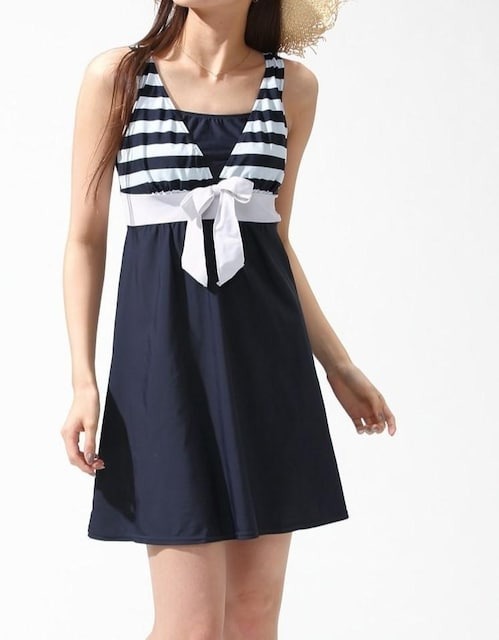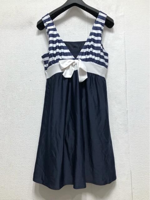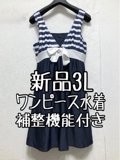 新品☆3L♪紺系ボーダー柄♪リボンかわいい補整ワンピ水着☆b921