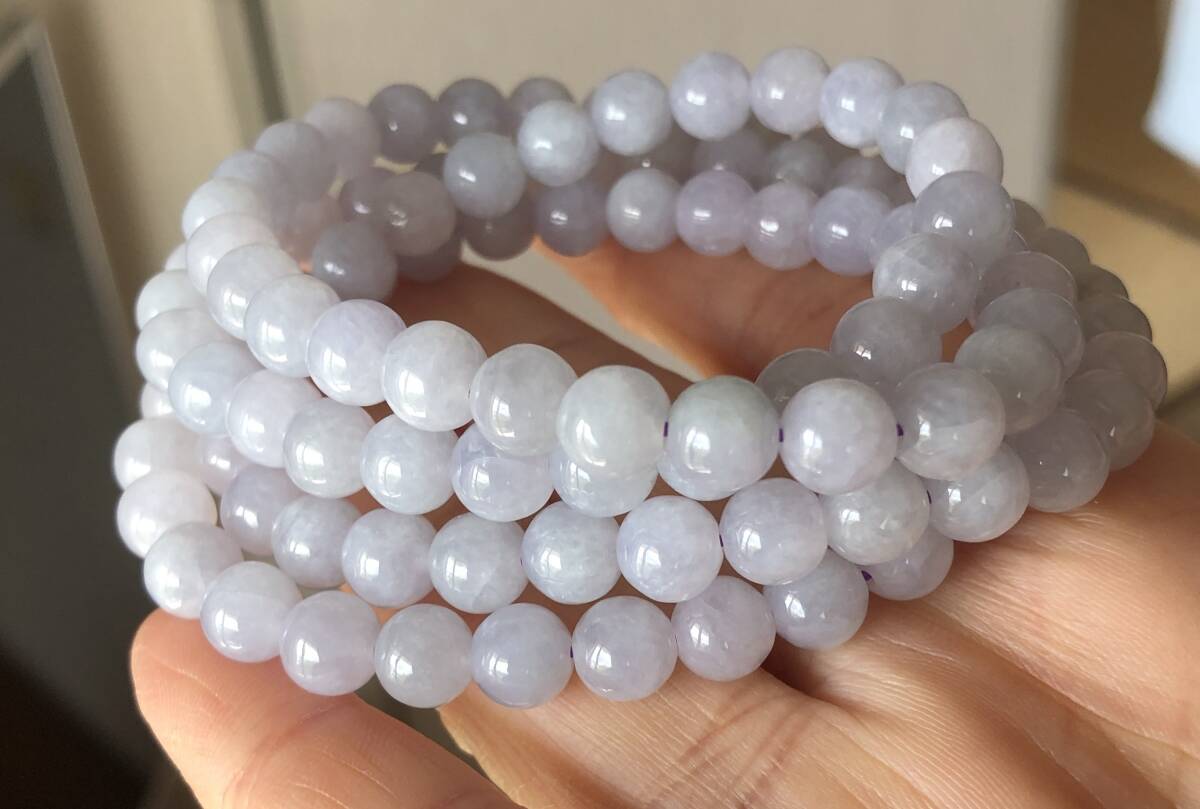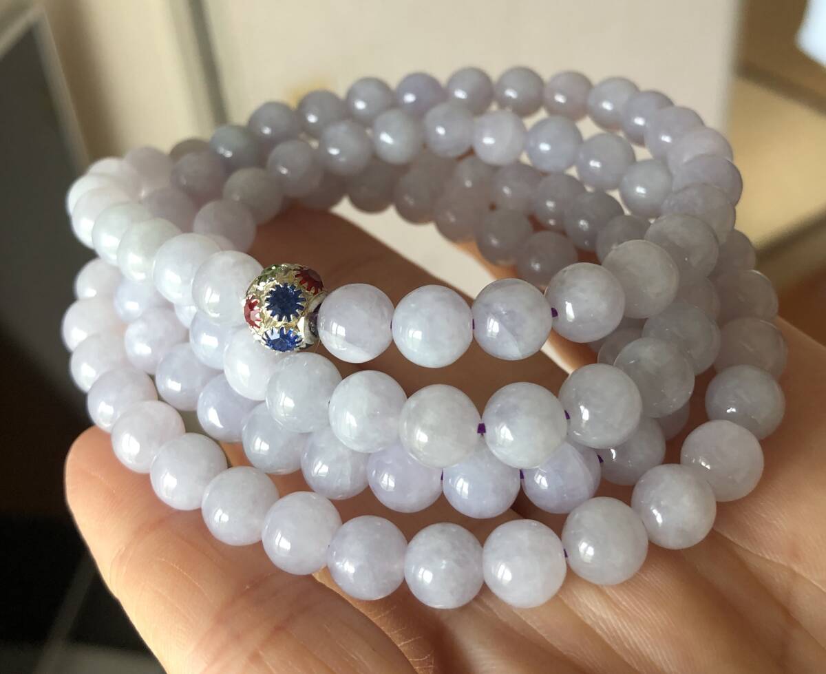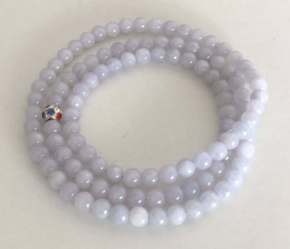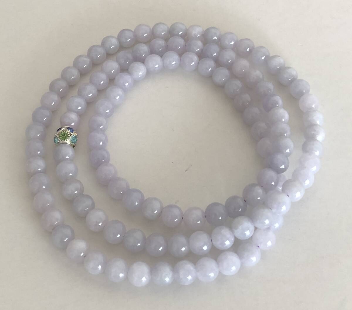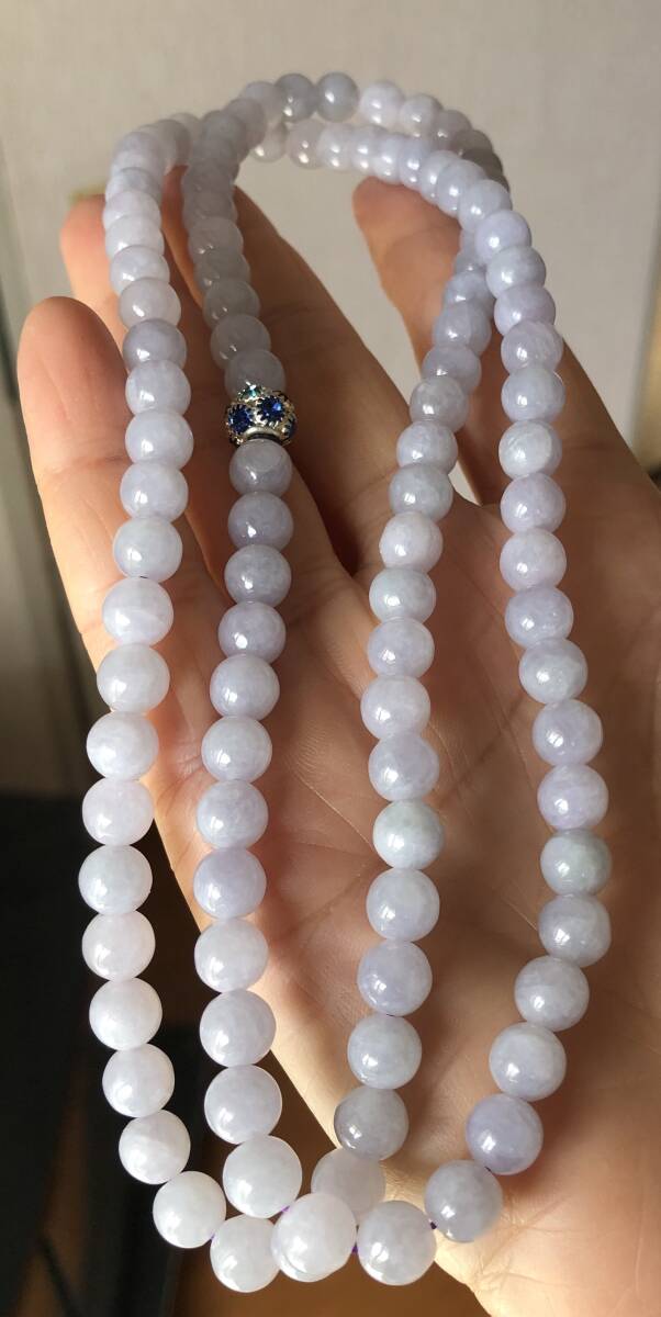 ミャンマー本翡翠ネックレスです。玉大きさが7mmを超えました。紫色全体的綺麗なネックレスです。