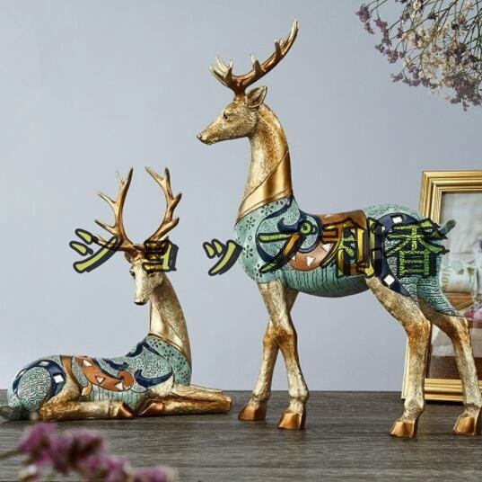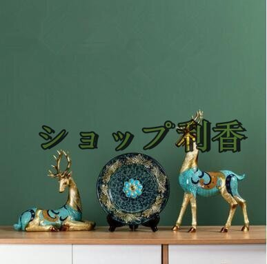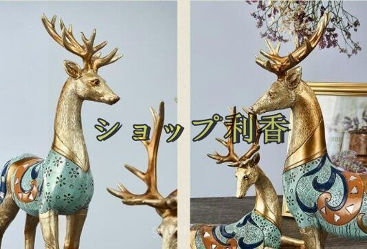 春新作オリジナル!2点セット 鹿 置物 置き物 レトロ インテリア 豪華 鹿 動物 オブジェ 手作 工芸品 現代 芸術品 ヨーロッパ