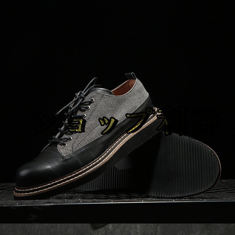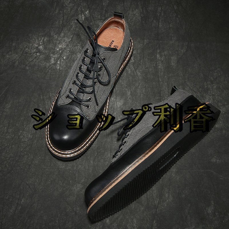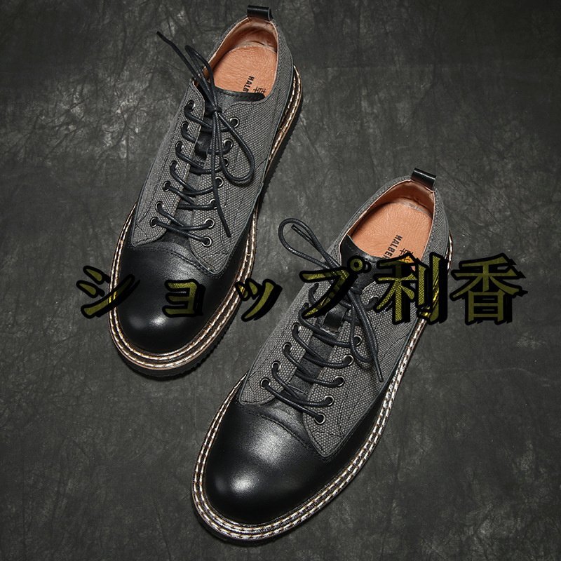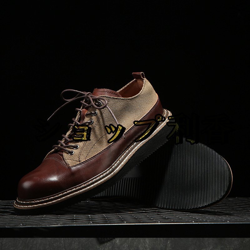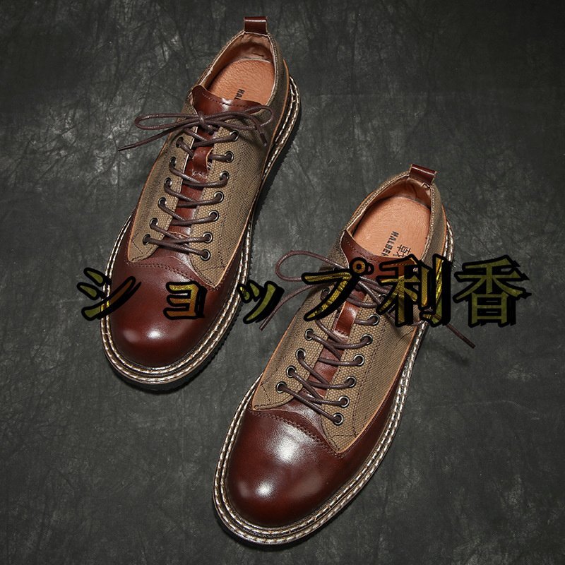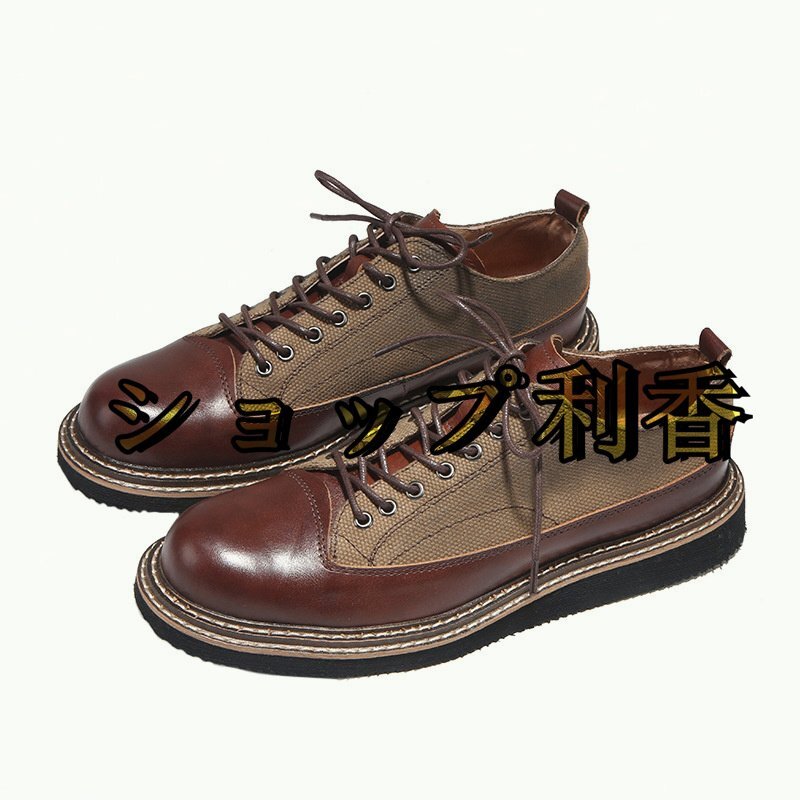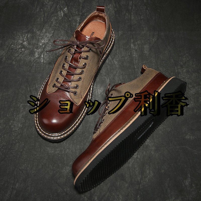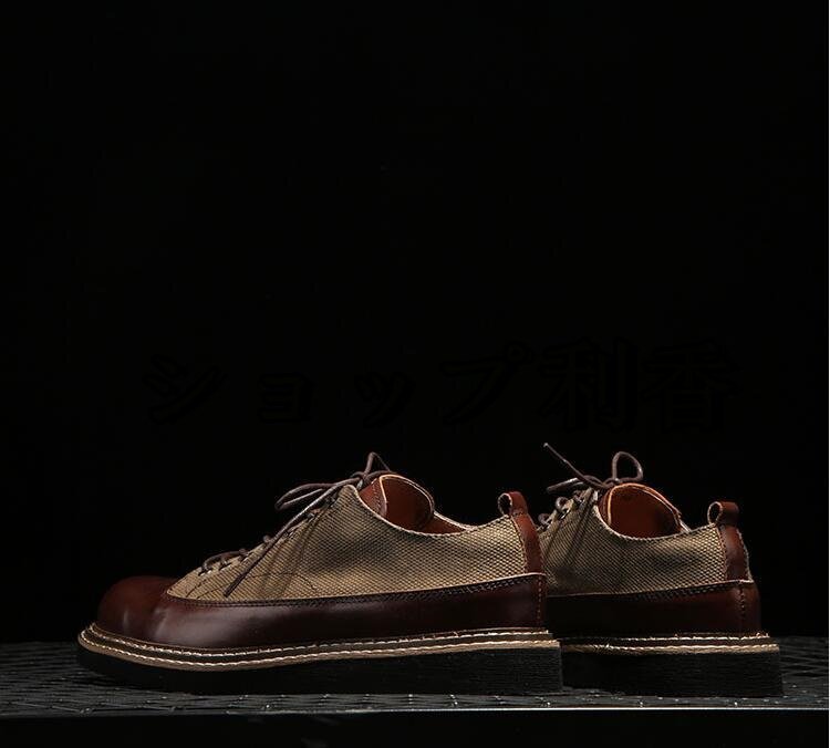 レトロ 牛革×キャンバス ビジネスシューズ 高級紳士靴 革靴 本革 パッチワーク ツーリングシューズ メンズ おしゃれ ブラウン