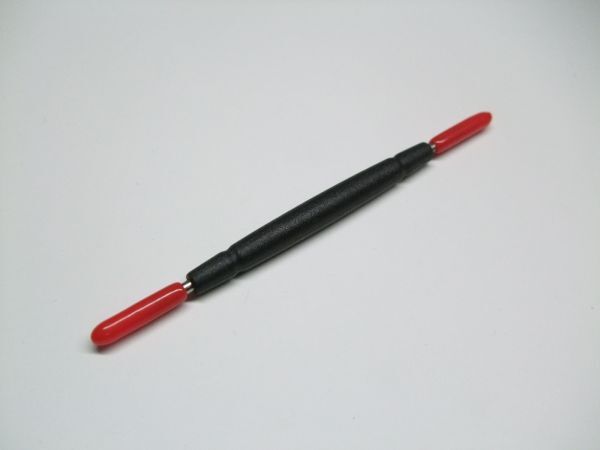 両端部スチール部の軸外径 2mm、先端片側 丸 軸径0.8mm、先端反対側 V字の切り込み加工