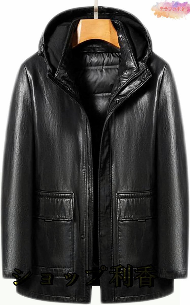 中身は高品質のダウン90%含み、確実な厚みから生み出されたフワフワな手触りと保温性、フード付き仕様で頭まできちんと守れて、更に暖かくて機能性アップするダウン レザージャケットです。