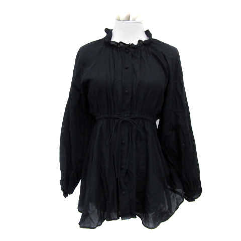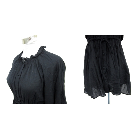 レイビームス Ray Beams ブラウス シャツ 長袖 ラウンドネック 無地 リボン 黒 ブラック /YS5 レディース
