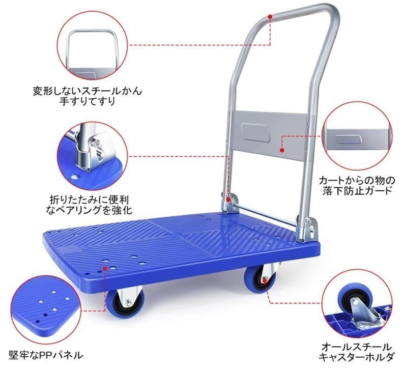 高品質 サイレントトロリー折りたたみトロリープルグッズ移動フラットベッドトレーラーオフィスショッピングカート耐力200KG