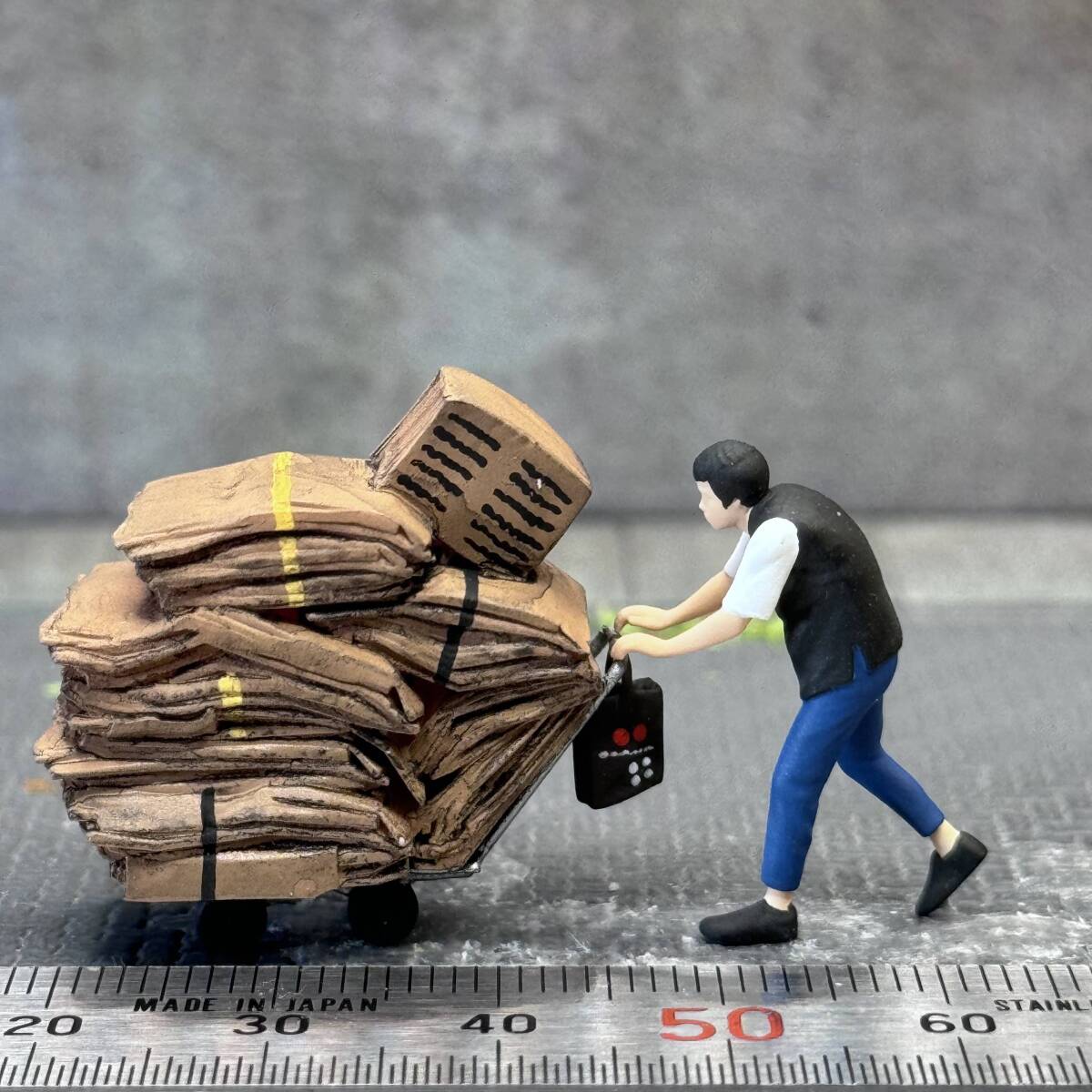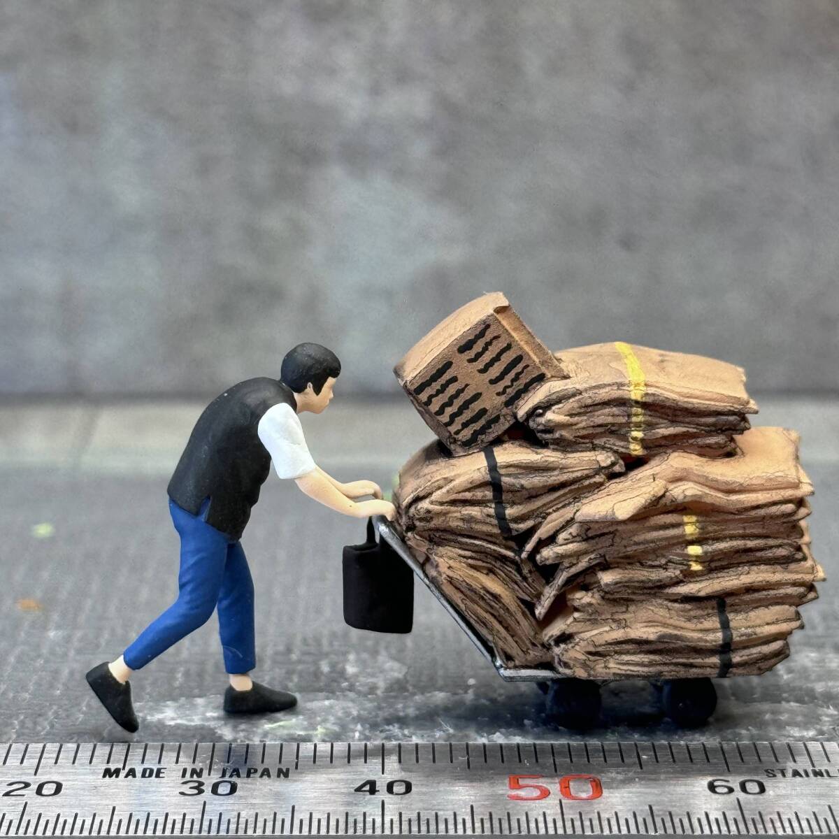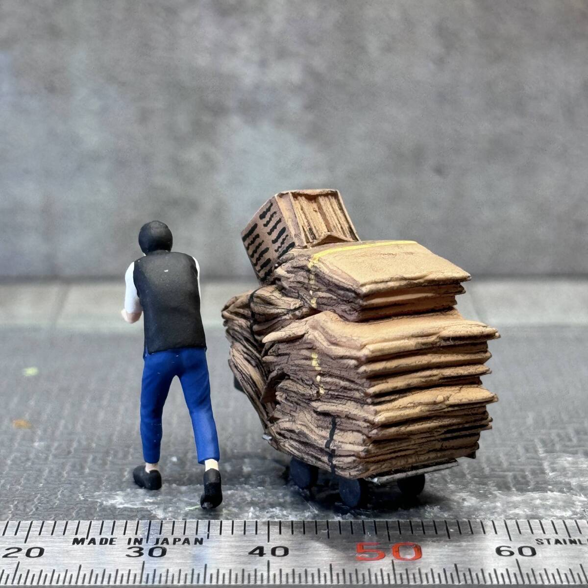 【KS-718】1/64 スケール 段ボールを運ぶ男性 セット フィギュア ミニチュア ジオラマ ミニカー トミカ