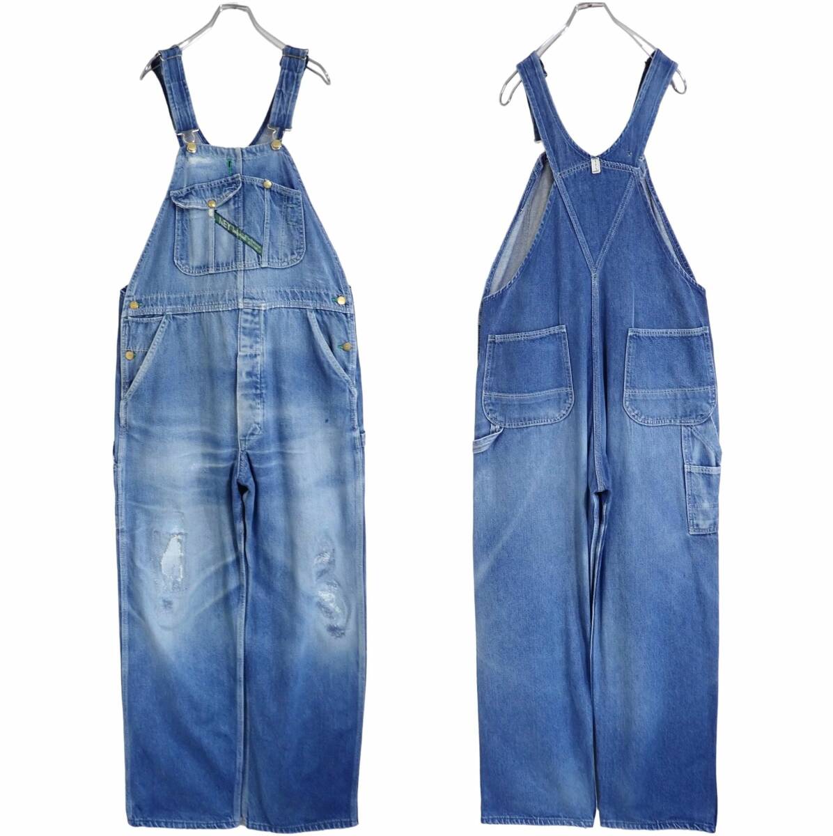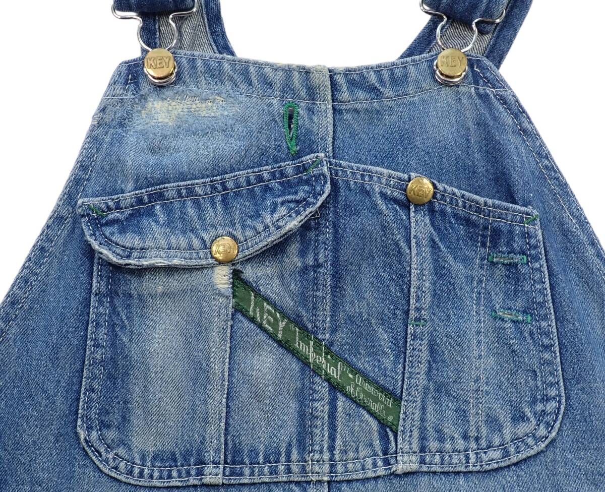 備考 KEY ImperialのUSA製デニム、ボタンフライのオーバーオールです。膝周辺のリペアが非常に良い雰囲気を出していると思います。クリーニング、プレス済。