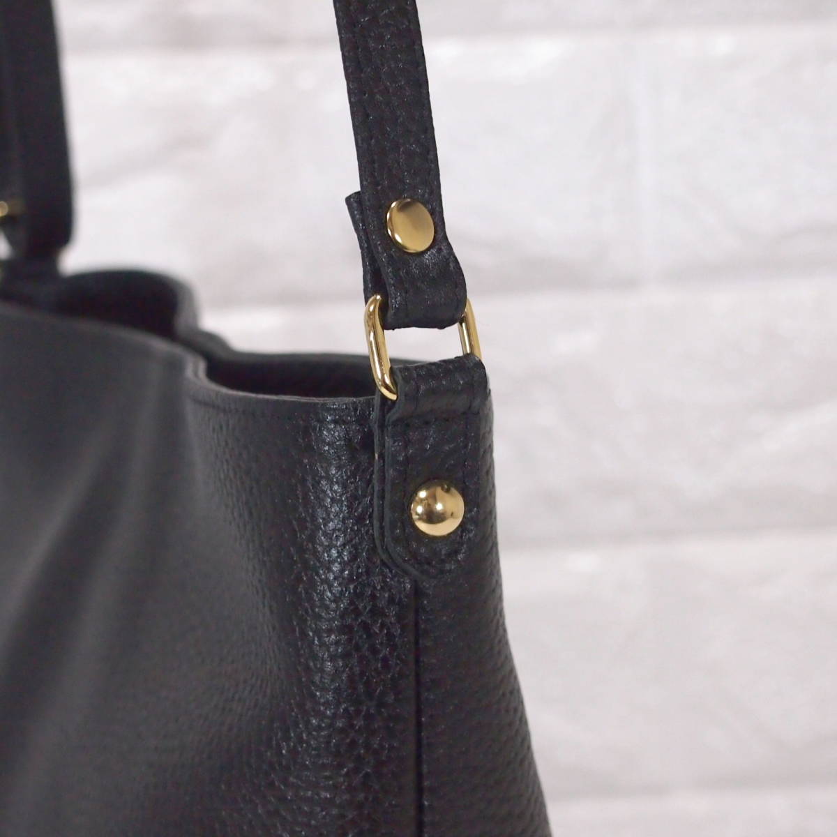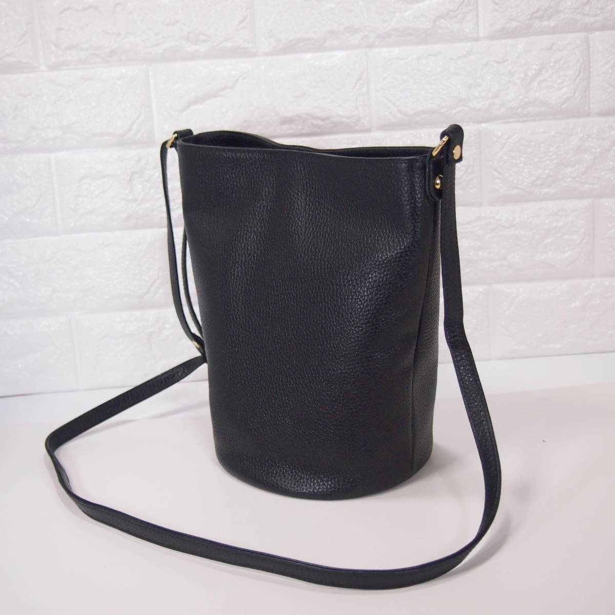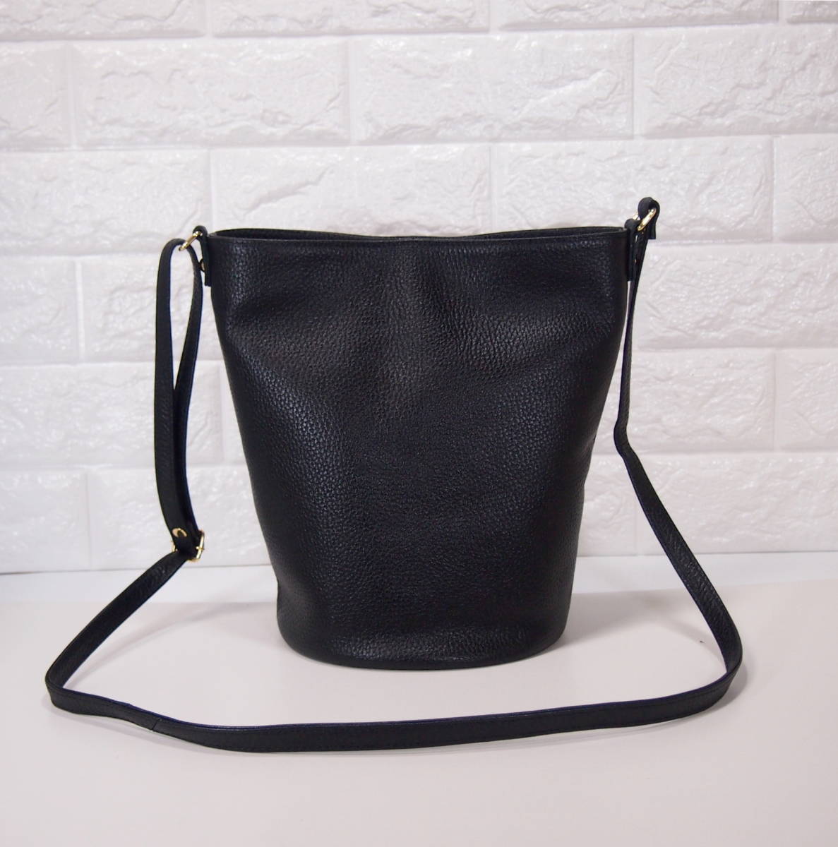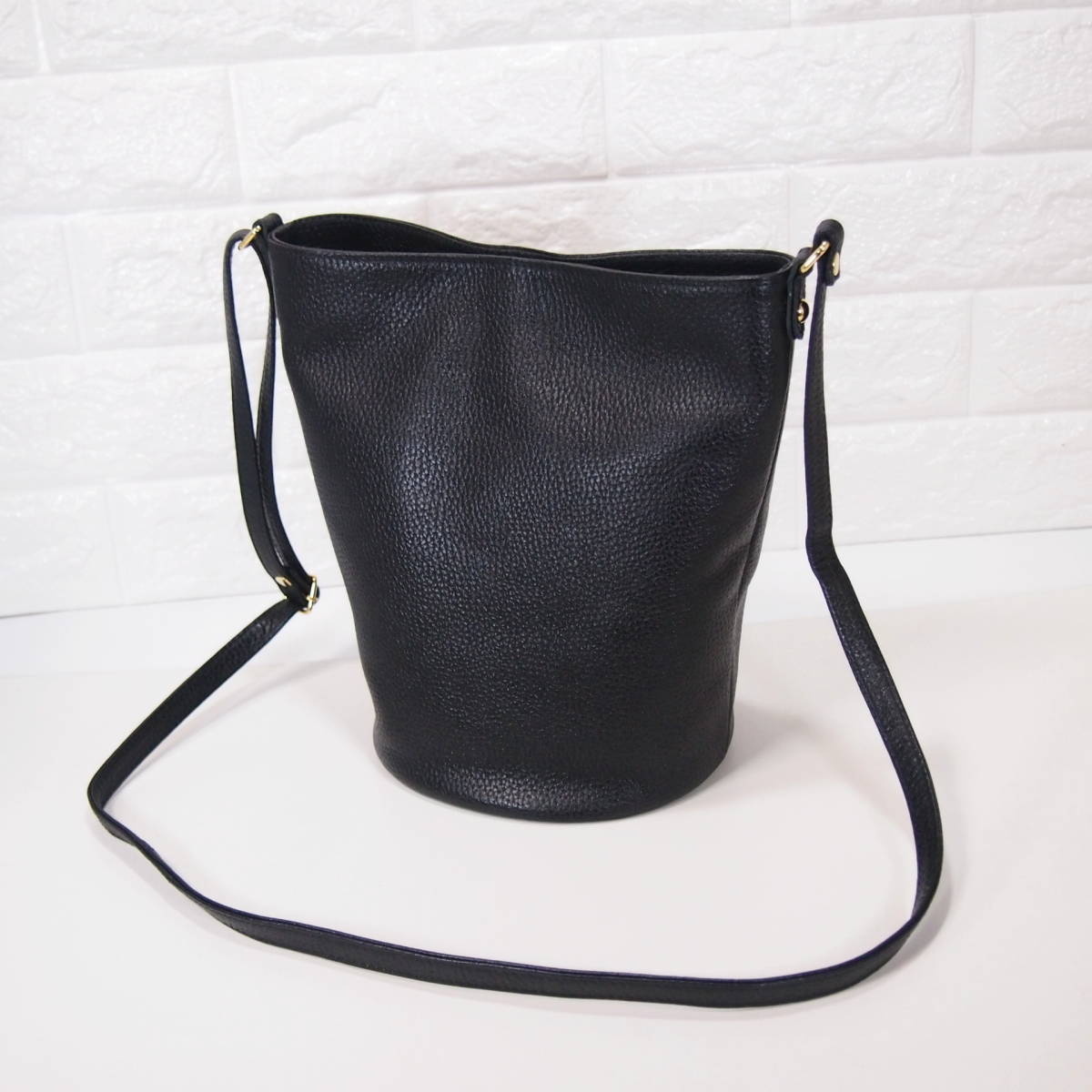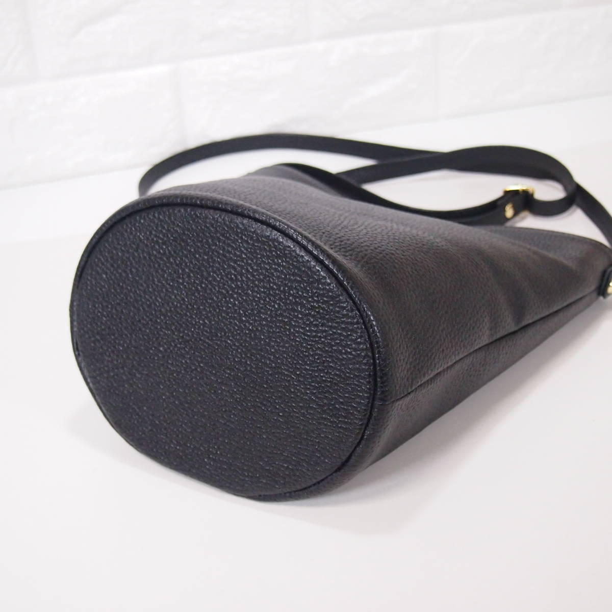 ★ハンドメイド★日本製★ソフト・牛革★底円形・バケツ型★斜め掛け(肩掛け)ショルダーバッグ★スマホ専用ポケット★クロ色★