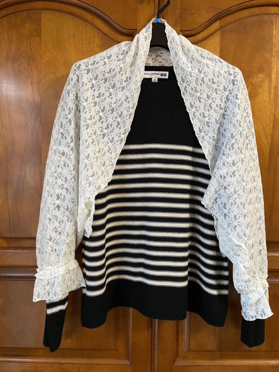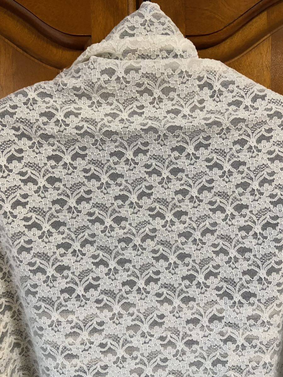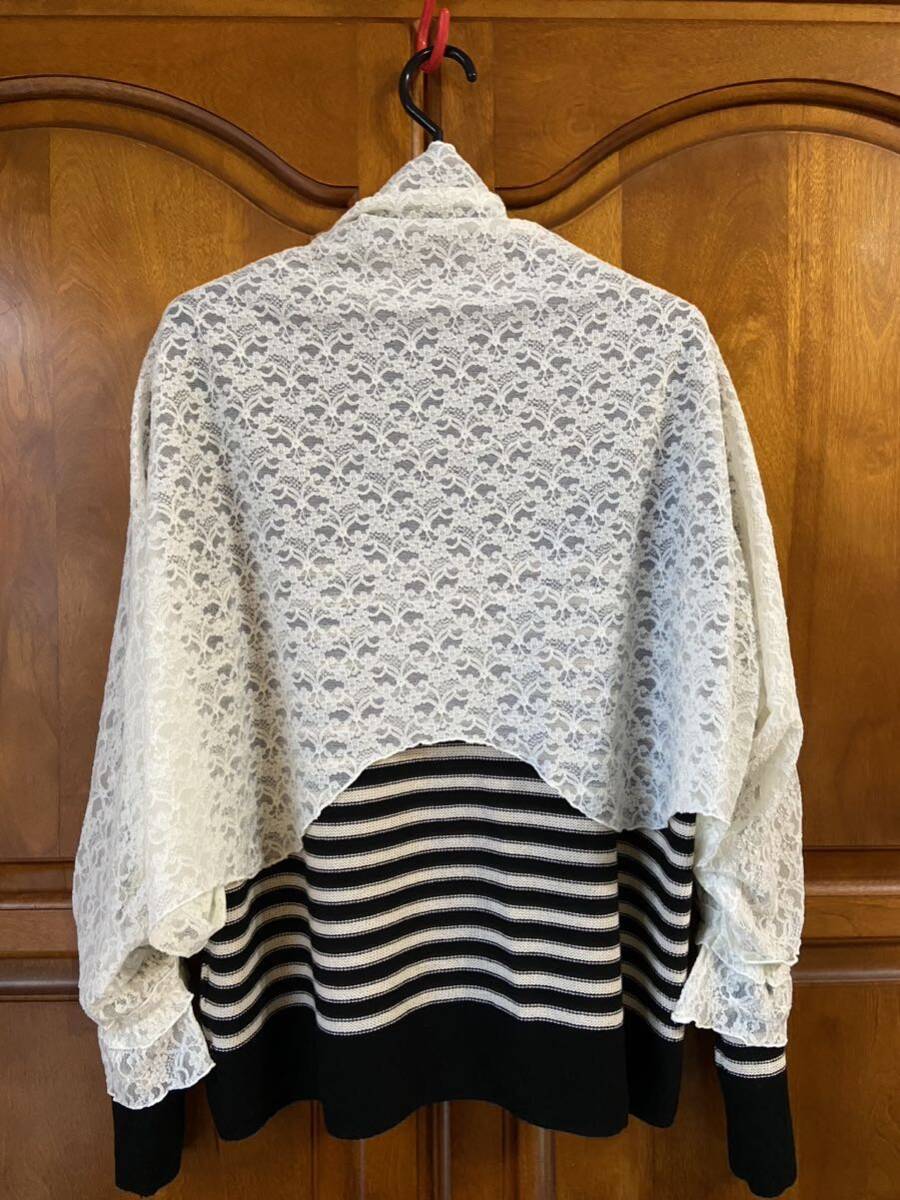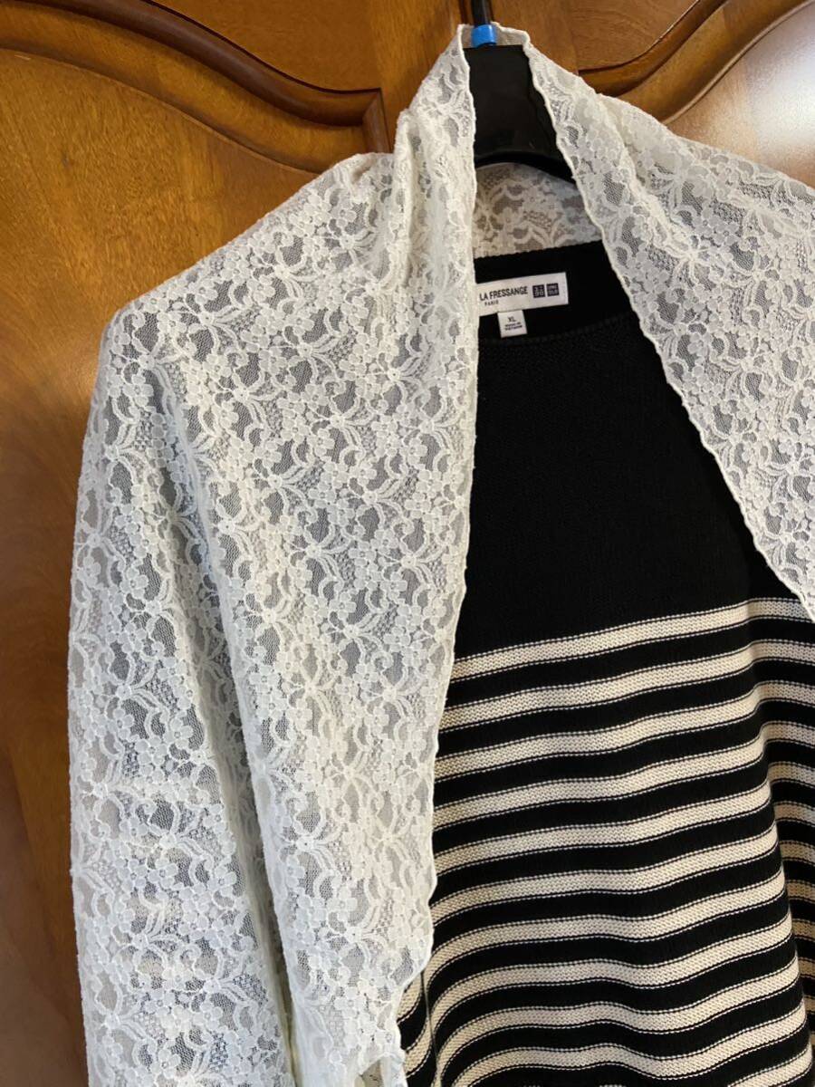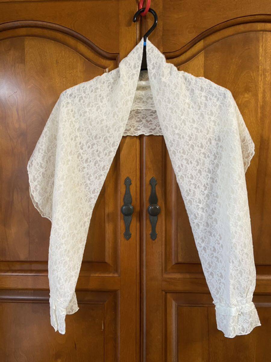 高島屋での購入です。レディースレースボレロ、カーディガン、1回だけ着用の美品です。お袖が入り、肩と背中を覆う形です。お色はアイボリーです。カーディガンだけの出品です。カットソーは別に出品しております。