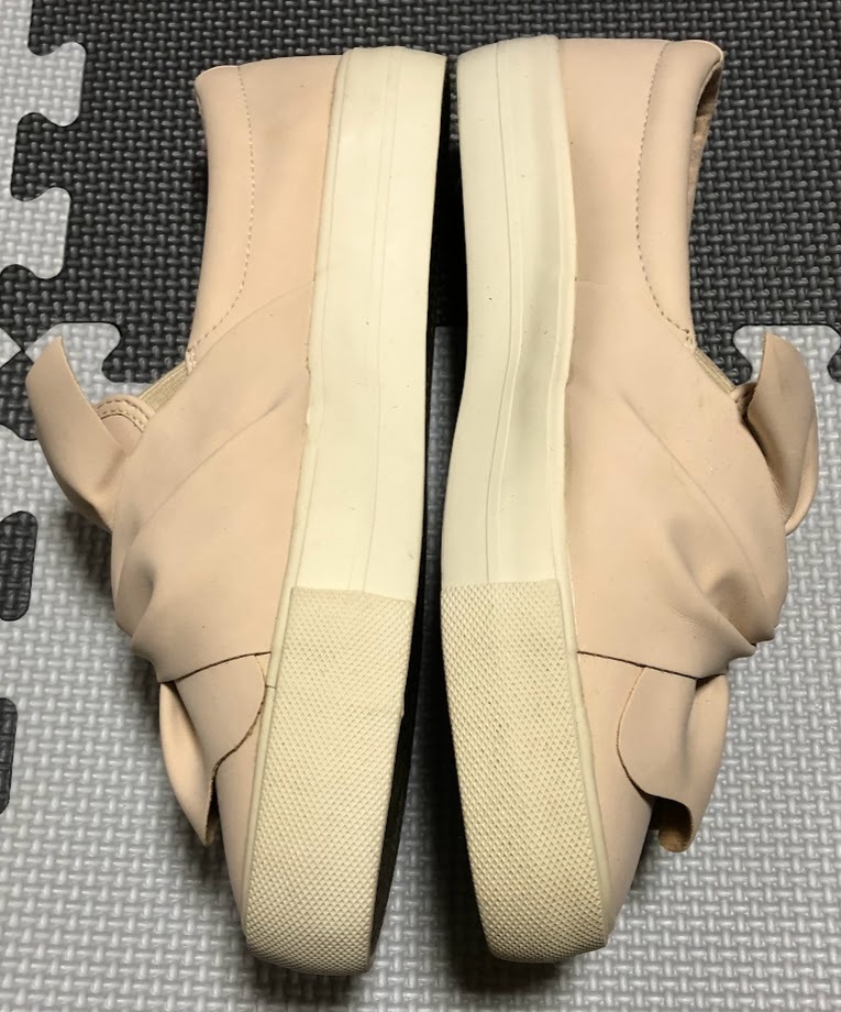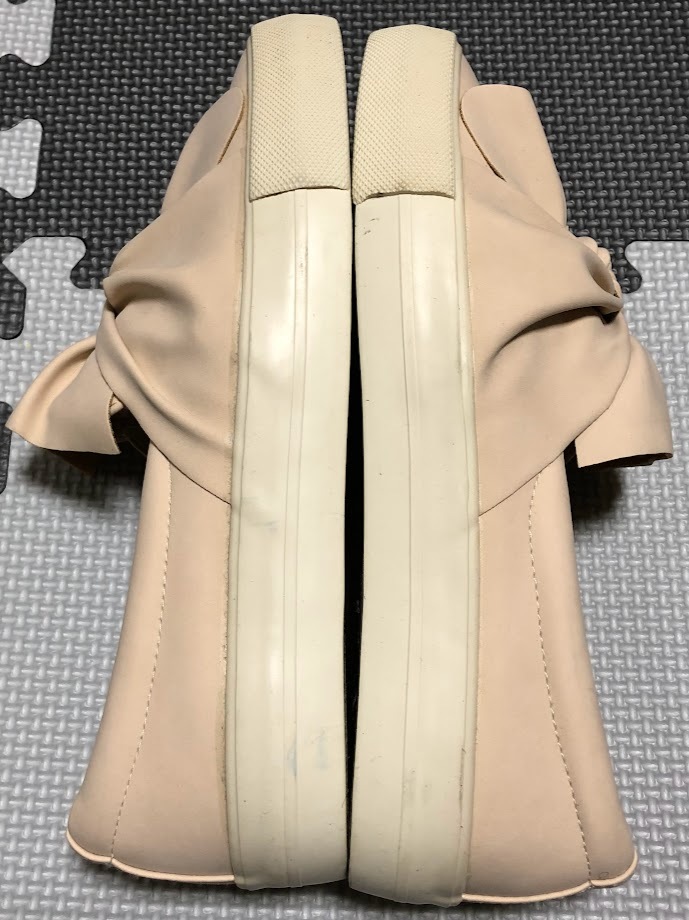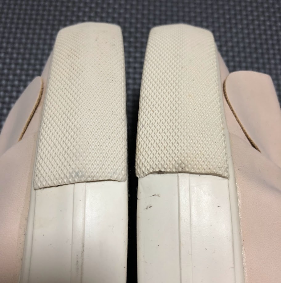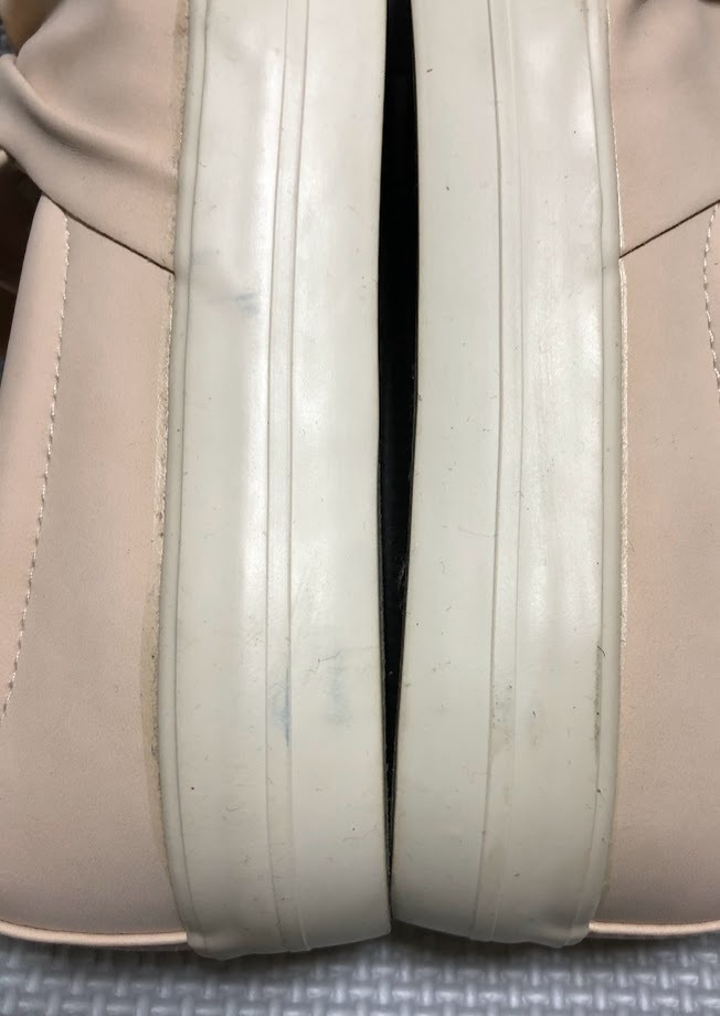 左足は特に汚れが目立ちます。履いていただいた際は内部なので目立ちはしないと思います。