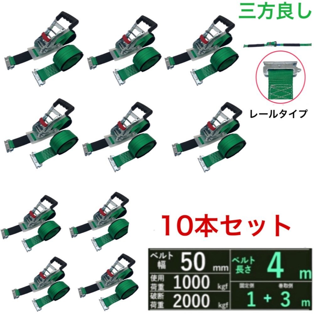 三方良し 10本 ラッシングベルト レール 幅50mm 破断荷重2000kg 固定側1m巻側3m 新タイプ ラチェットベルト収納式 ラッシングベルト Rフッ