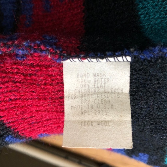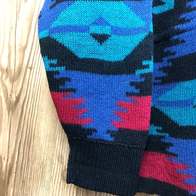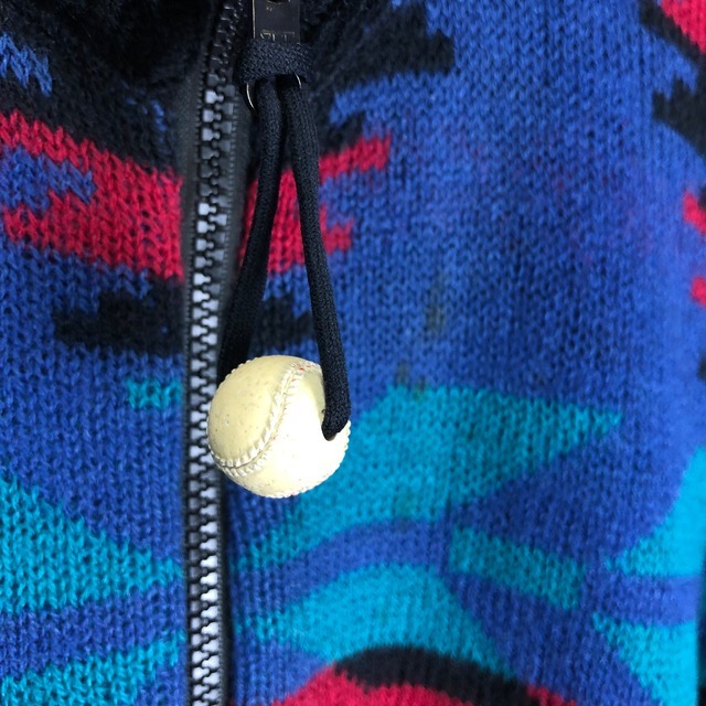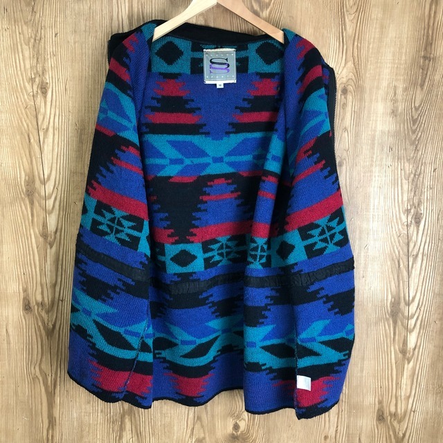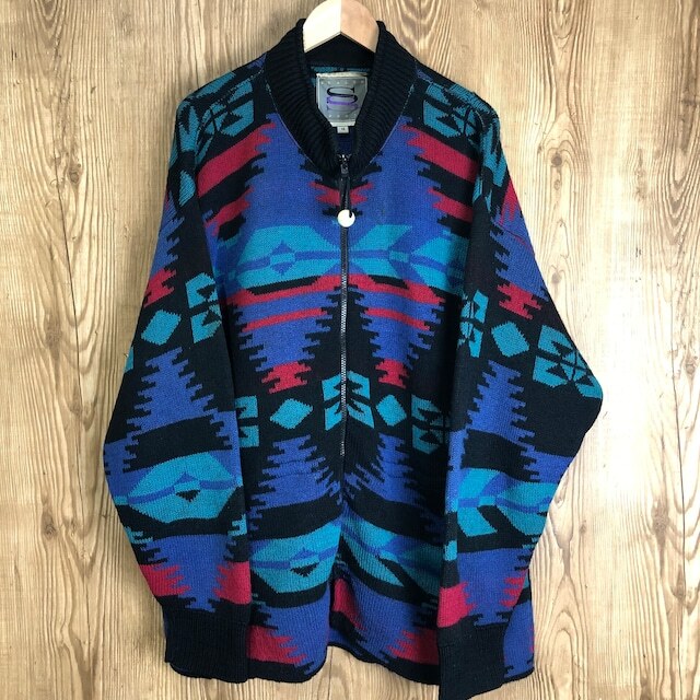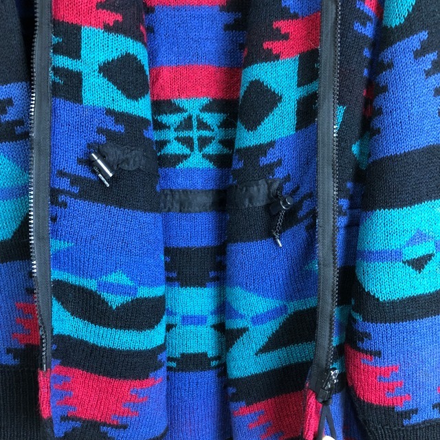 USA製 80s VINTAGE ネイティブ柄 ニット フルジップ ジャケット ポケット付き メンズL程 80年代 ビンテージ ヴィンテージ アメカジ 古着 e24031526