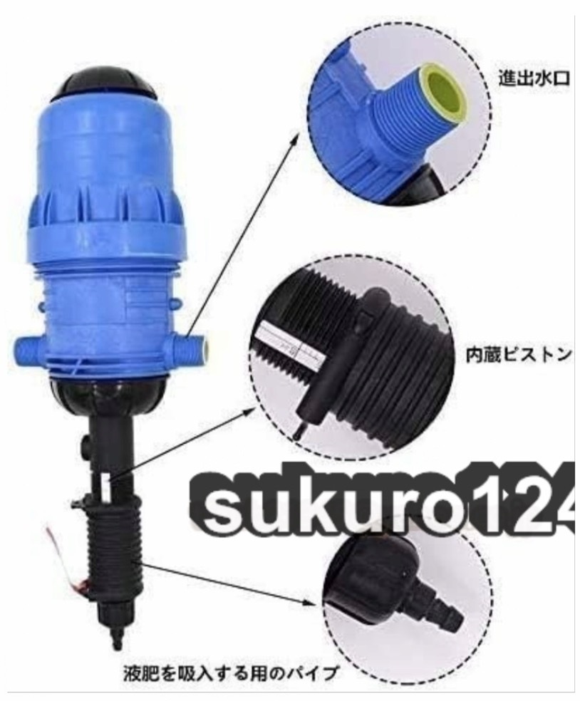 ★状態:新品未使用 1、混入比例範囲:原液の0.4-4% (1:25-1:250倍に希釈)、25mm外径20mm内径取付口径、流量範囲:20-2500L/H、作動水圧:0.2-3bar、分解・組み立てが簡易。免責事項:商品が出荷される前に、それらは吸水テストを受けます。商品に少量の水が残っていますが、これは正常です。 2、【液肥混入器の機能】:薬注ポンプは、動力設備が不要、水動力をエンジンとして、水流の流れより、液体添加剤/薬/液肥などを直接吸引して、設置した特定の倍率を調整して供給できます。流速や圧力が変動しても流量に応じた正確な混入比率で薬液を混入。 3、特徴:重いじょうろや希釈する手間から解放、薬液に触れなくて、自動的安定した希釈率でお手軽に散水。大面積作業、産業施設として最適。効率的に増収や品質向上が期待できる。 4、【適用範囲】液体肥料もしくは粉末肥料を水で溶かして希釈したもののみ使用できます。例えば、OATハウス1号、2号、住友液肥、トミー液肥、イノチオリパリなど。花卉園芸、水耕、農業、家畜養殖、工業衛生、水処理、金属加工、消防、車両洗浄、道路掃除、印刷業界、その他の業界にも適する。 5、【セット内容】:液肥混入機、吸液ホース、交換バネ。注意:比例ポンプが作業して始める時には、カカッと音がするなら、ポンプの上にある放気弁を押して、エアー圧を調整、少量の水が出た時にボタンを緩め、加薬器の正常に作業します。バネが消耗品で、折れてから交換必要。