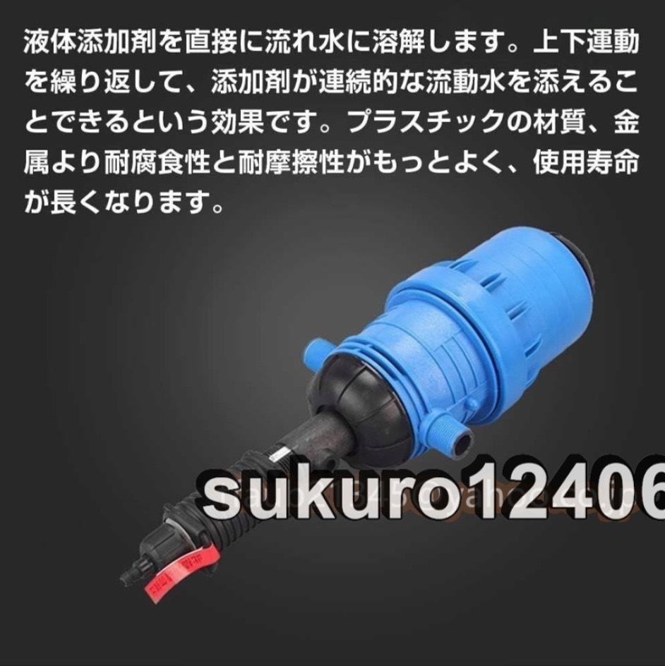 液肥混入器 薬/肥料を希釈 0.4-4%流量比率調節 水流駆動 25mm外径20mm内径接続口 20L-2500L/H流量範囲 ガーデニング 点滴灌漑用 薬希釈器