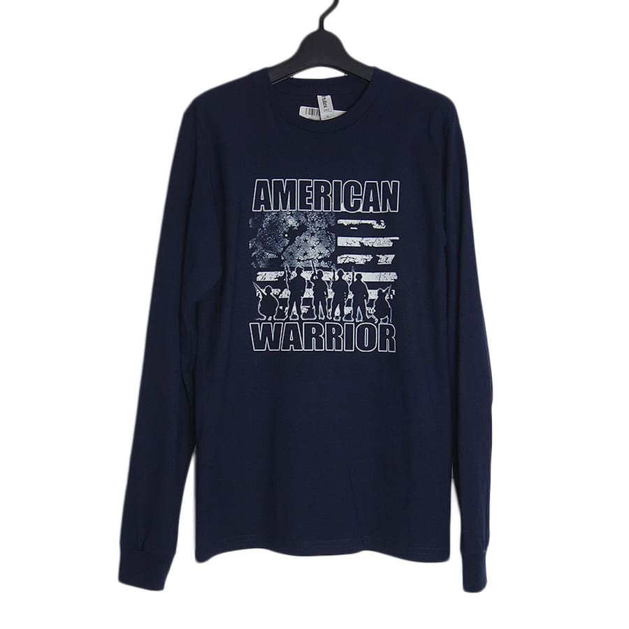 新品 AMERICAN WARRIOR ロングスリーブ tシャツ プリントTシャツ 長袖 メンズ Sサイズ 紺色 ティーシャツ ロンt 星条旗と兵士