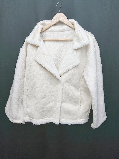 ◇ JUNOAH ジュノア ムートン ボア かわいい 長袖 ブルゾン ジャケット サイズL アイボリー系 レディース P