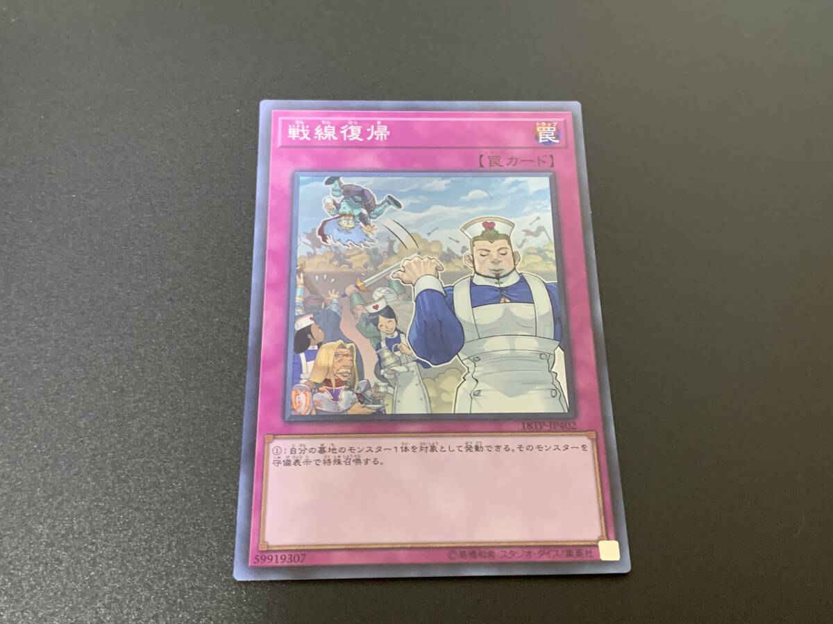 | 商品説明 | 商品説明、注意事項全てご覧の上で入札をお願いします。 入札して頂いた場合、上記に同意して頂いたと判断致しますので予めご了承下さい。 他の商品との同梱も可能です。その際は商品名とご一緒に取引ナビで必ずご連絡下さるようお願いします。 6枚までは定形郵便84円となります。それ以上ご希望の場合はその旨お伝え致します。 商品到着後、必ず受取連絡は行うようお願い致します。 又、不手際があった際は取引ナビでご連絡下さるようお願い申し上げます。 ■商品状態 【戦線復帰】スーパーレアです。 このカードの状態は「B+」です。 カードの状態は下記のようにS~Dにて表しております。 又、出品物によっては下記表現ではない場合が御座いますが 少しずつ修正していきますのでご理解下さいませ。 「S/ミント」 (未使用・パックから開けたばかりの状態。傷 汚れがほぼない物。) 「A/ニアミント」 ( 開封直後によくある綺麗な状態。若干の傷、痛みがある状態) 「B/エクセレント」 (多少の傷、痛みが見受けられたりする状態。) 「C/ベリーグッド」 (目立つ傷などがあったりする状態。スリーブをつけてプレイする分には差し支えのない状態。) 「D/プアー」 (傷、汚れがかなり目立つ状態。傷を気にされない方向け。) 「+-」で状態の補足を行う場合が御座います。 +=該当のランクより若干良いが1ランク上げるほどではない物。 -=該当のランクより若干低いが1ランク下げるほどではない物。 レリーフ特有の凹凸、反りに関しましては上記状態には反映しません。 又、海外版のお品は作りが粗いため、初期傷等が多い場合が御座います。 出来る限り当方が丁寧にチェックを行っていますが、人の手によるものですのでどうしても見落としなどがある場合が御座います。 過度に気にされる方は入札をご遠慮下さいませ。 表現の仕方など人それぞれ感じ方が違います。上記を踏まえた上で御入札を宜しく御願い致します |