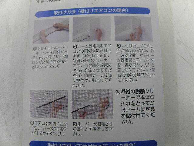 商品説明 | ☆TAKARA!エアコンの風向き調整!WAVE LOUVER!2個セット ・タカラ産業のエアコンの風向きコントロールです ・TAKARA WAVE LOUVER ・カラー ホワイト ・ルーバーサイズ 72~92×8cm ・対応エアコン幅 70~90cm ・壁付アーム長さ 18cm ・天井付アーム長さ 5cm ・エアコン利き過ぎ注意! ・使えそうな方どうぞ! ・同じ物×2個です ・メーカー詳細はこちら ・https://item.rakuten.co.jp/r-kojima/ 4543845000096/?iasid=07rpp_10095___ef-lum7no4y -dy-97a68acb-5ab8-49f2-a3fb-8e7fe2bfcdd8 ☆付属品 写真の物が全てです ・元袋(箱にイタミがあります) ・取説(パケージ内) ・ルーバー×2個 ・ジョイント×1個 ・壁付、アーム×2個 ・天井付、アーム×2個 ・壁付、固定具×2個 ・天井付、固定具×2個 ・注意:開封して撮影しました ☆状態 未使用 ・未使用ですが、若干の汚れ、キズなどがございます ・それでもよろしい方、未使用なので現状渡しでお願いします |