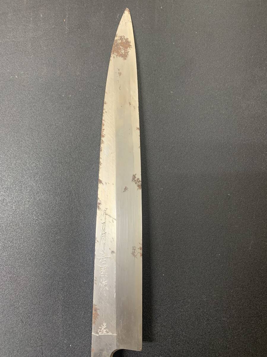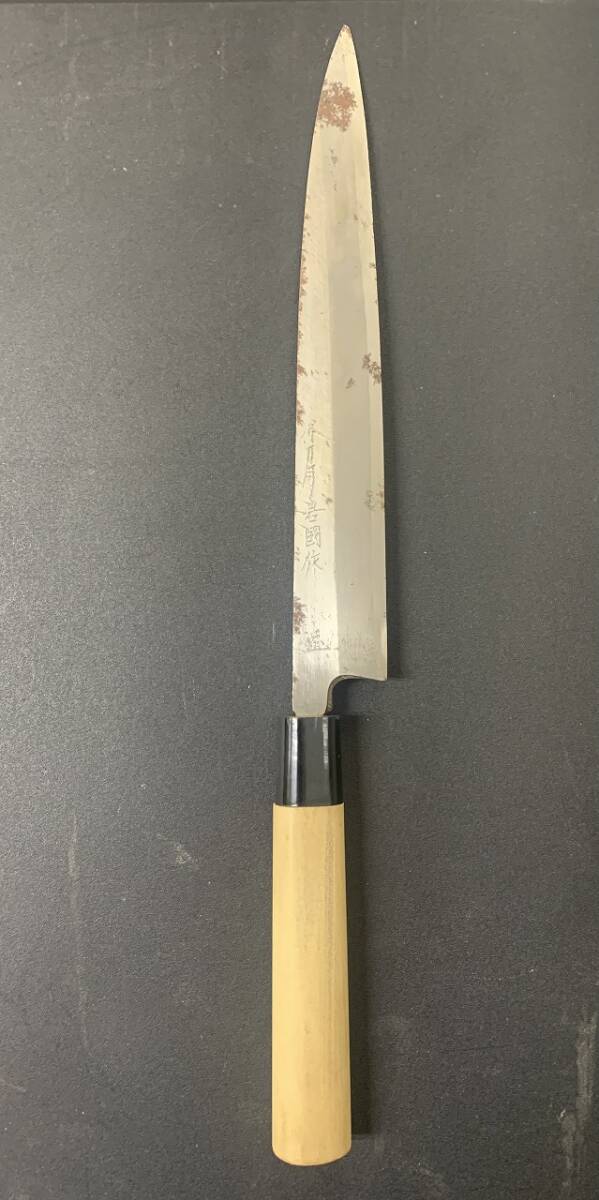 堺刀司 岩国作 全長約38㎝ 刃渡り約23㎝ 柳刃包丁 和包丁 刺身包丁 料理包丁 調理器具 包丁 ①