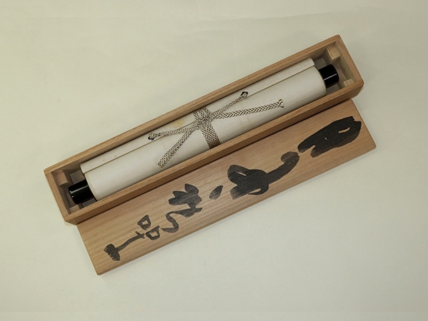 清水公照 しみず-こうしょう(1911-1999) 昭和-平成時代の僧。 明治44年1月3日生まれ。兵庫県出身。 16歳で東大寺宝厳院に入り,竜谷大卒業後天竜寺で禅を学ぶ。 宝厳院住職となり,昭和49年東大寺別当,50年華厳宗管長。 55年大仏殿の昭和大修理落慶法要を催した。平成11年5月6日死去。88歳。 本紙は、軽い染みがあります。 表装は、染みがあります。箱蓋のサイズが合っていません。 【サイズ】 作品 横約31cm×縦約131cm 表装 横約33cm×縦約207cm |