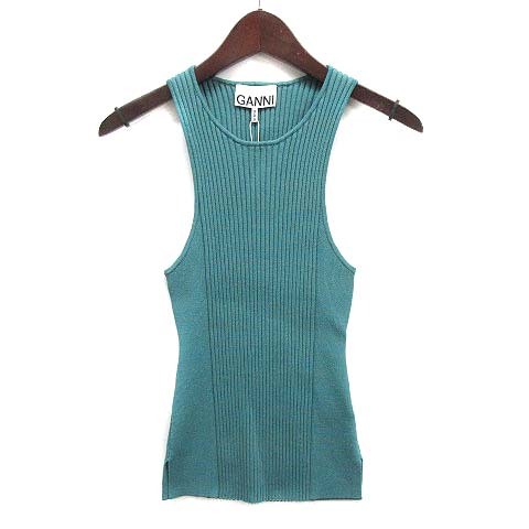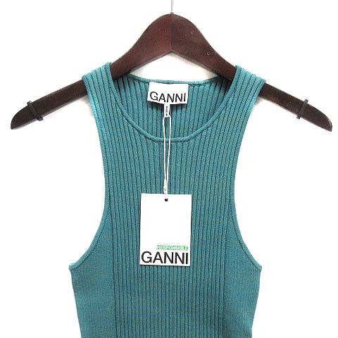 未使用品 ガニー GANNI メランジ リブニット トップス タンクトップ ノースリーブ ラグーン XS K1877 レディース