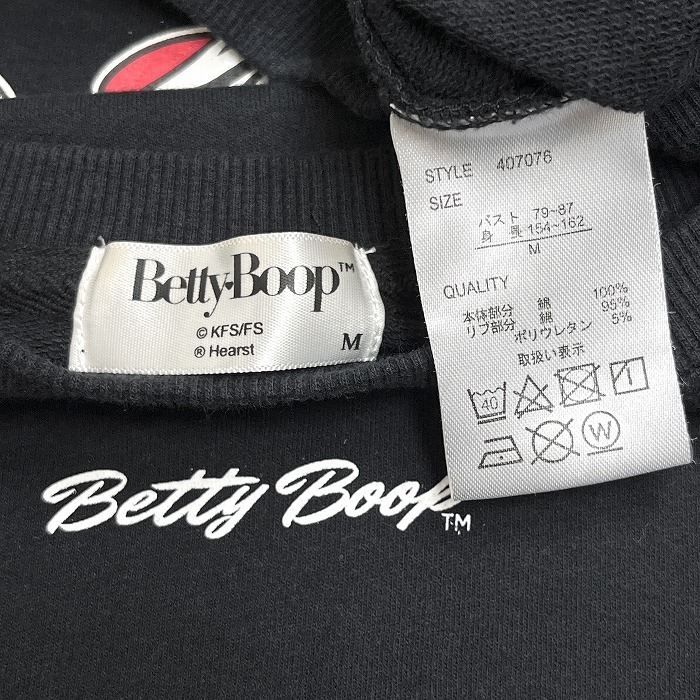 商品タイトル | ベティーブープ BETTY BOOP スウェットシャツ トレーナー 裏毛 背中プリント 長袖 ビッグシルエット 丸首 綿100% M ブラック 黒 レディース |