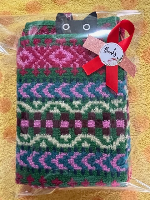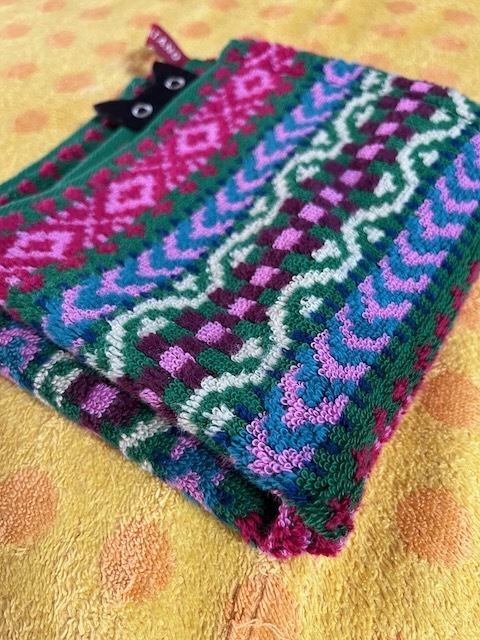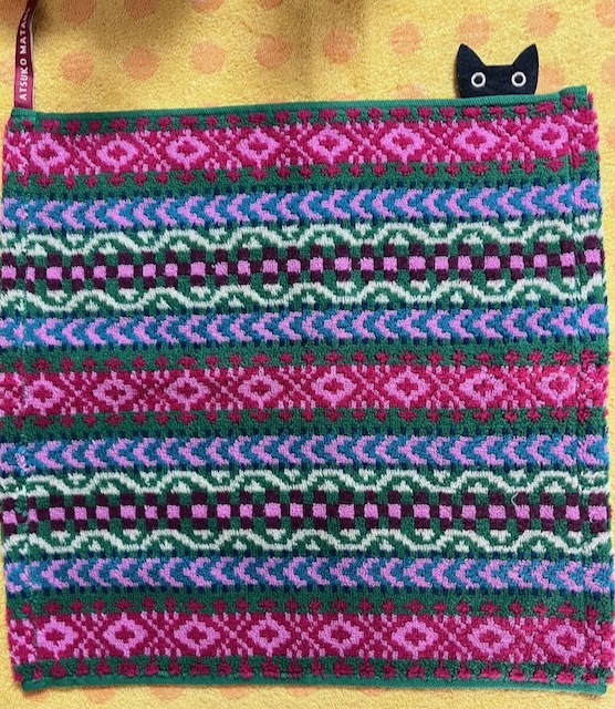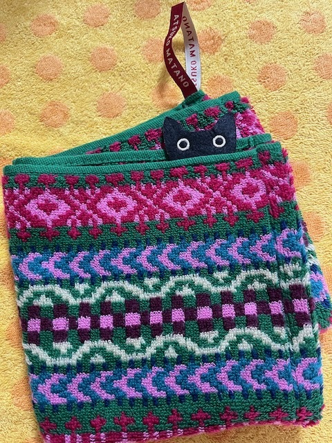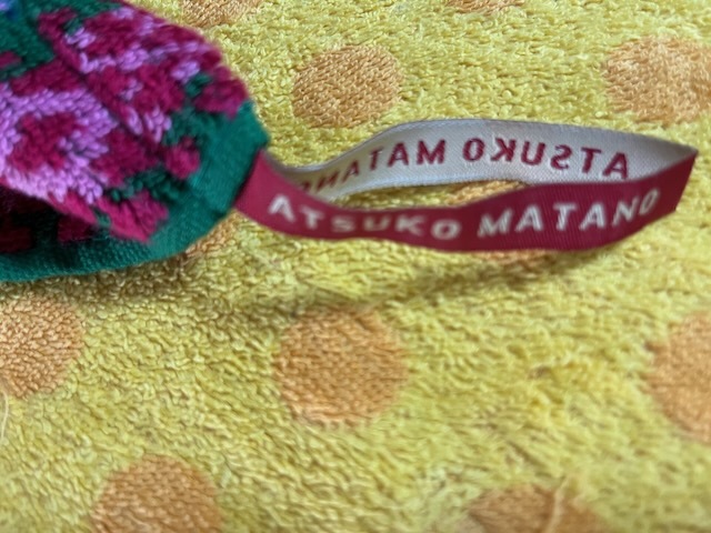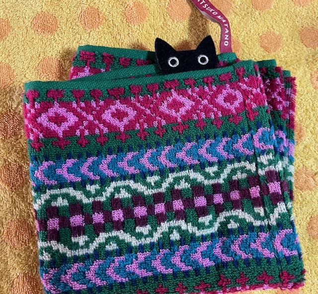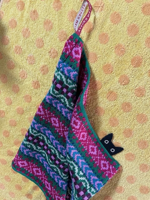 Atsuko Matano アツコマタノ ハンドタオル ループ付き猫ひょっこりニット柄gr3435