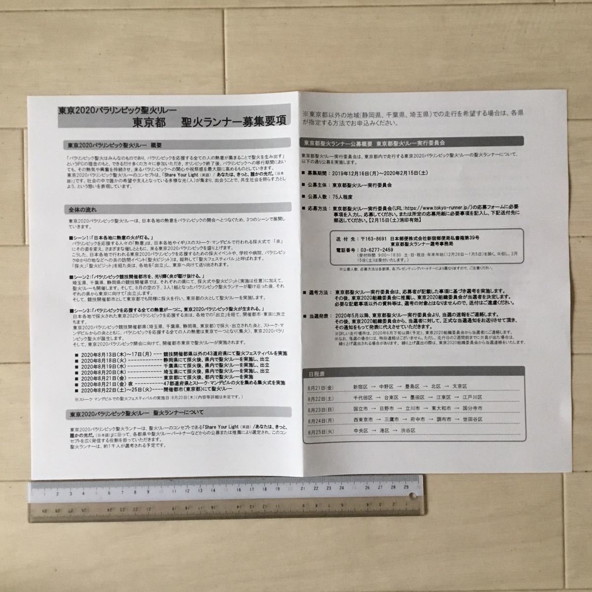 東京2020パラリンピック聖火リレー 東京都 聖火ランナー募集要項・応募用紙A3両面印刷2枚組み(東京都聖火リレー実行委員会版)1部です。