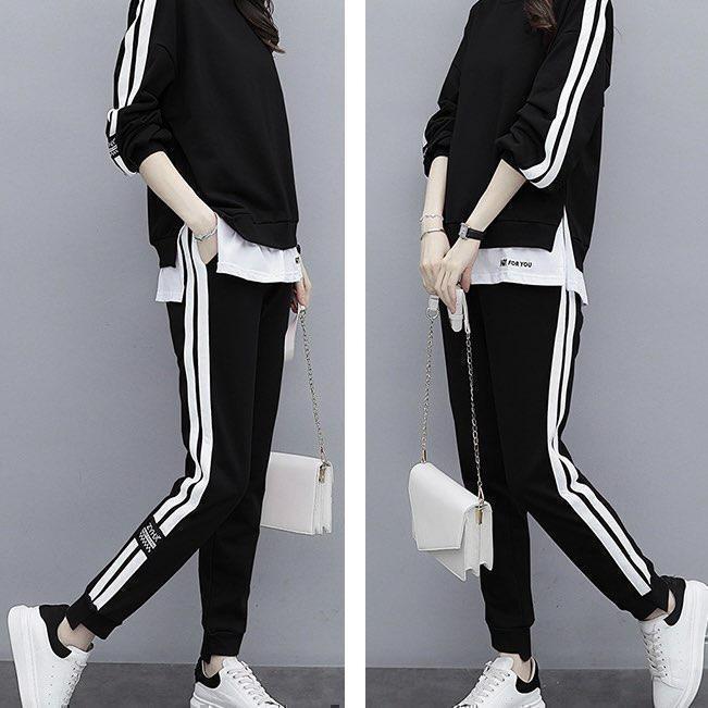 インポート 海外製品 海外 上下 セットアップ ライン ホワイトライン 白いライン ブラック 黒 ジャージ スポーツ ランニング 運動 ゆったり ゆったりサイズ 大きめサイズ レディース