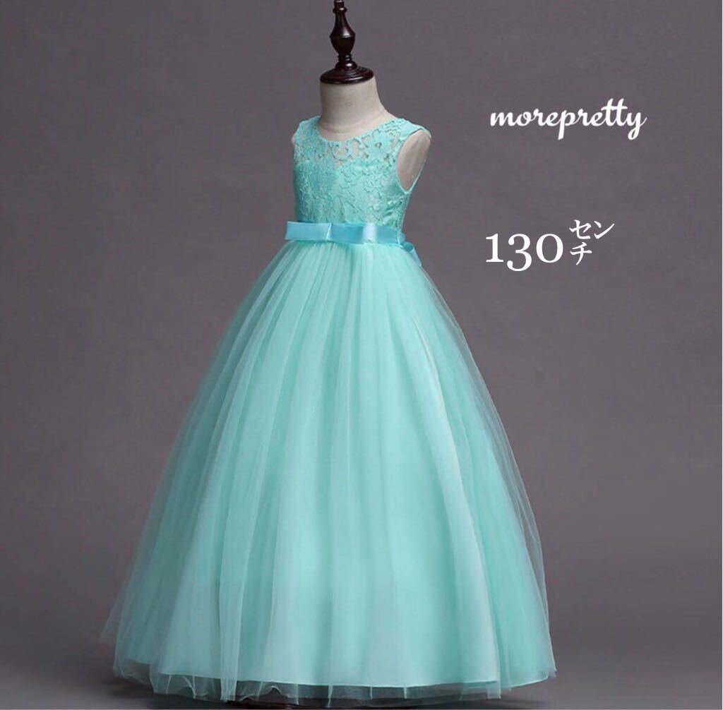 新品子供ドレス130㎝グリーン 子どもドレス女の子ロングドレスフォーマルワンピースジュニアドレスキッズドレスリングガール結婚式