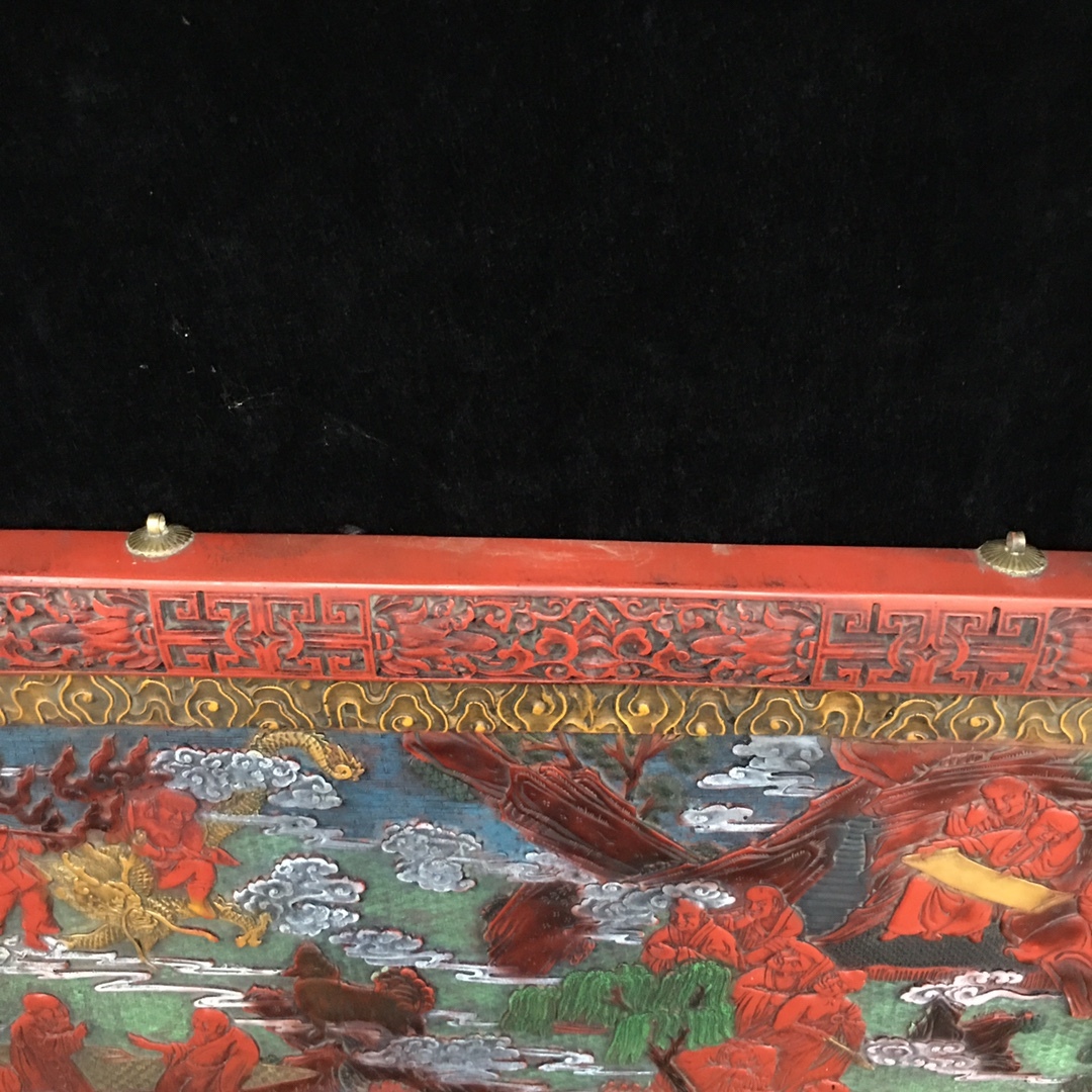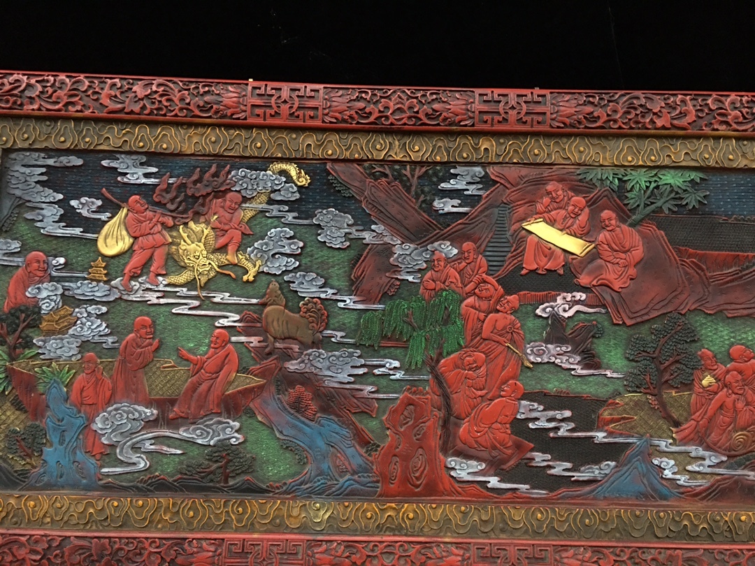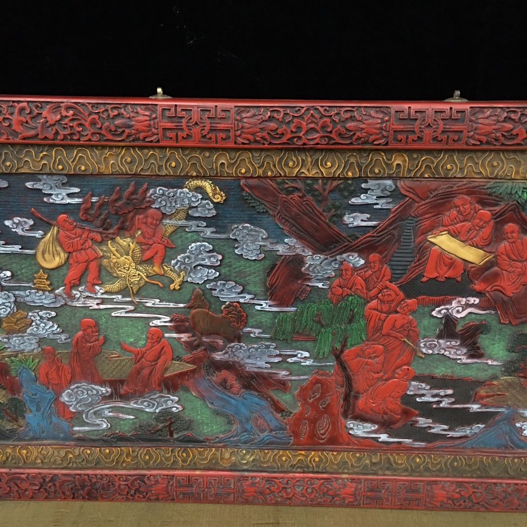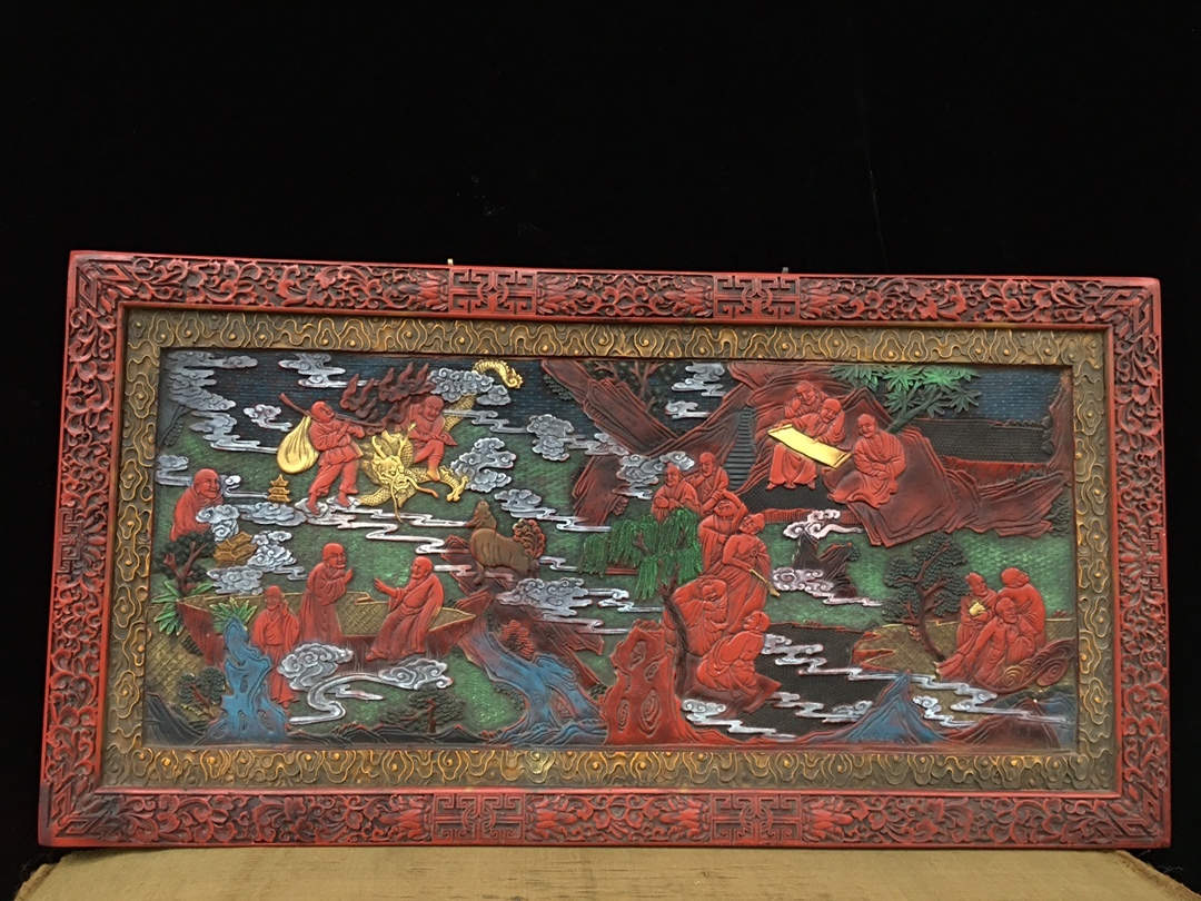 中国 清代 乾隆年制 大漆彩繪 漆器【十八羅漢】屏風扁額 掛屏 時代物 中国古美術 賞物 置物 唐物 古美術品 GYS165