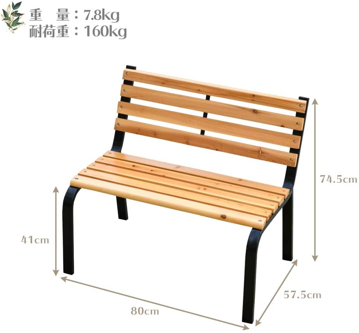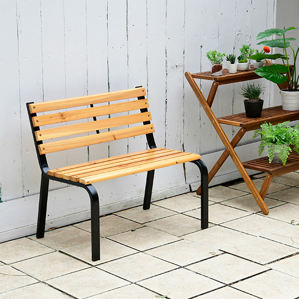 ガーデンベンチ ミニ 幅80cm 天然木製 おしゃれ KMB-80(NA/BK) スチールベンチ パークベンチ ガーデンチェア おしゃれ