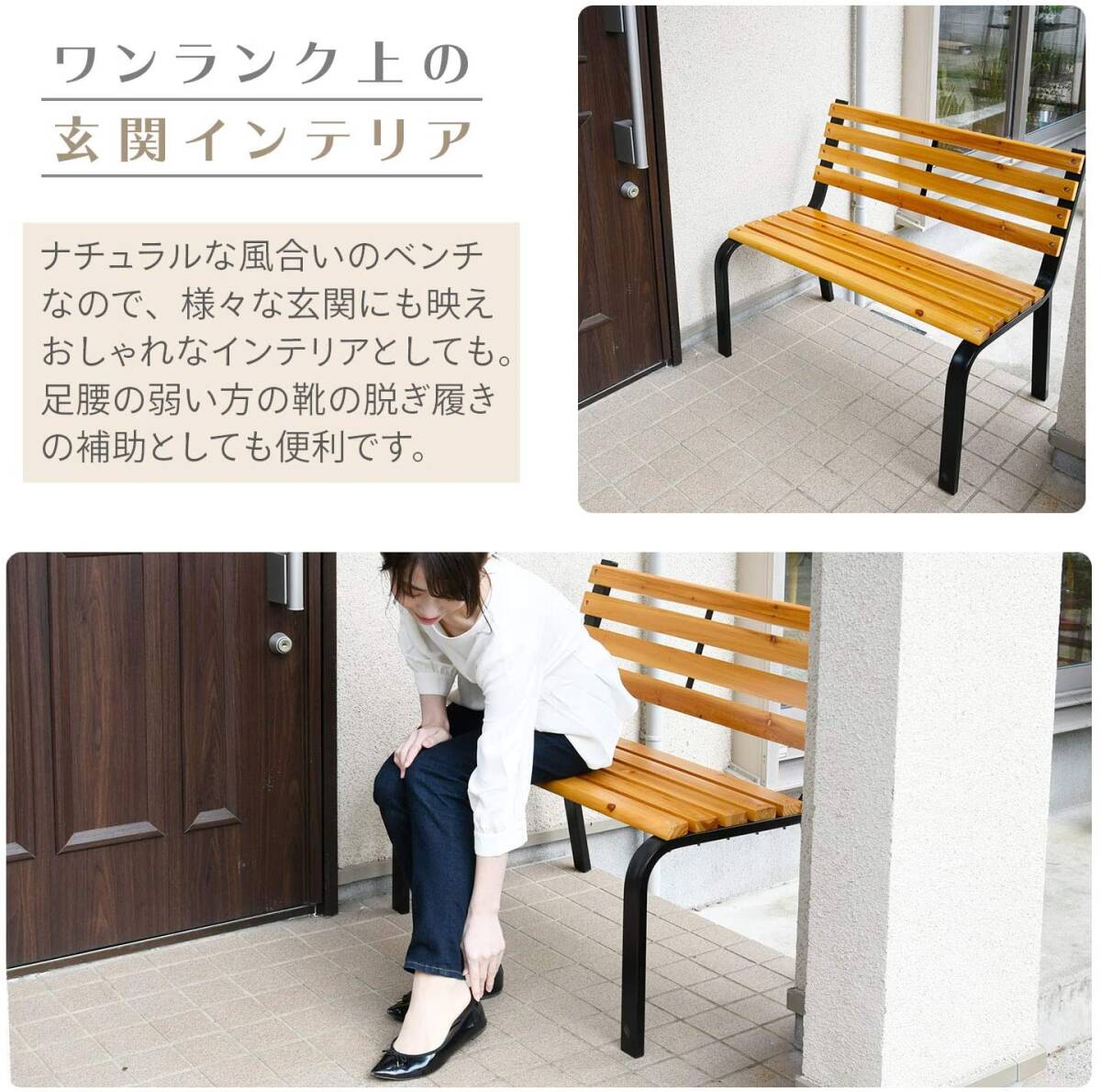 ナチュラルな風合いのベンチなので様々な玄関にも映え、オシャレなインテリアとしても。足腰の弱い方の靴の脱ぎ履きの補助としても便利です。