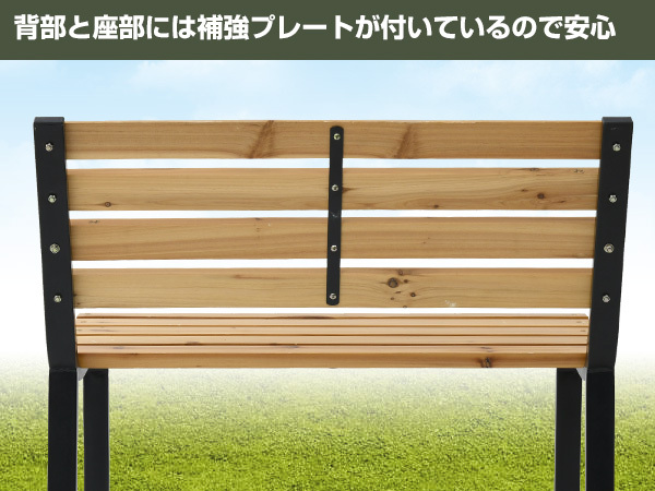 背部と座部の裏側にスチール製の補強バーでしっかり補強が施されており、安心安全な設計です。