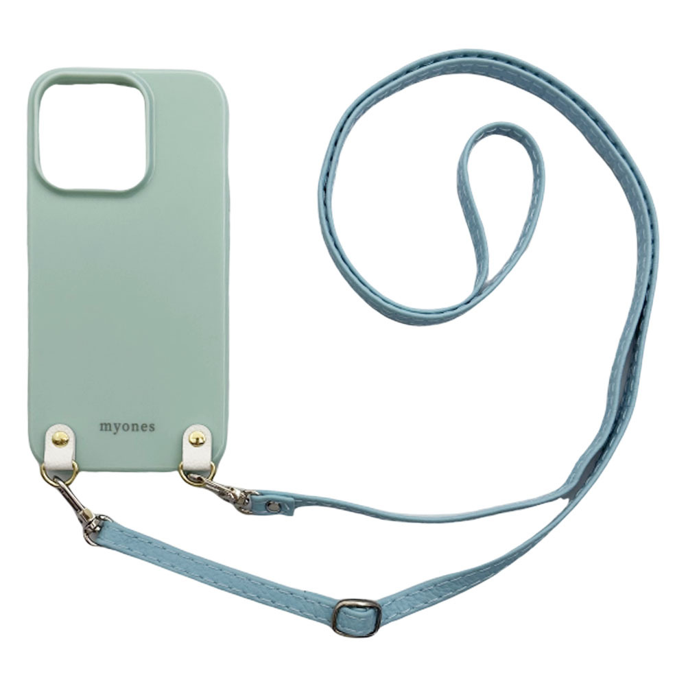 Xperia XZ3 SO-01L SOV39(くすみグリーン/ブルー)PUレザー ソフトケース スマホショルダー 肩掛け 首かけ 斜めがけ かわいい 韓国