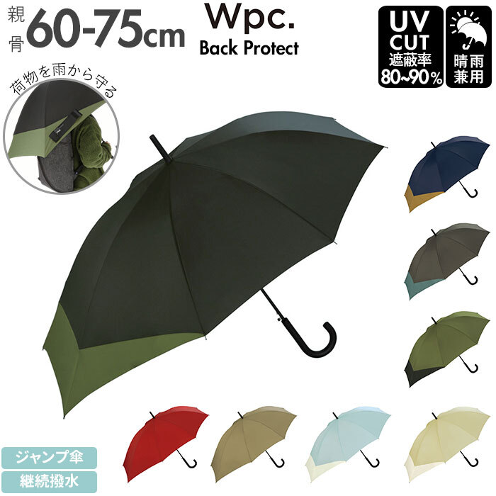 商品説明 | ・2004年に誕生したドメスティックブランド「Wpc.」よりバックプロテクトジャンプ傘が発売。 ・片手でも簡単にワンタッチで開けられるジャンプ式タイプ。 ・傘を開くと骨の一部が後方に伸びる特殊構造。後ろに大きく広がり背負ったバックパックを雨から守ってくれる。 ・一般の傘と比べて長期的に継続する撥水加工とUVカット加工済み。雨傘としてだけでなく日傘としてもお使いいただける晴雨兼用傘。 ・紫外線遮蔽率は淡色の物は約80%、濃色の物は約90%の防止効果。 ・シンプルなデザインだからユニセックスでお使いいただけるアイテム♪ |