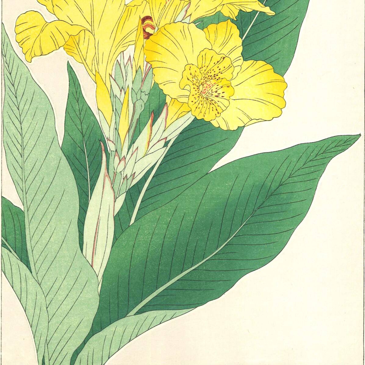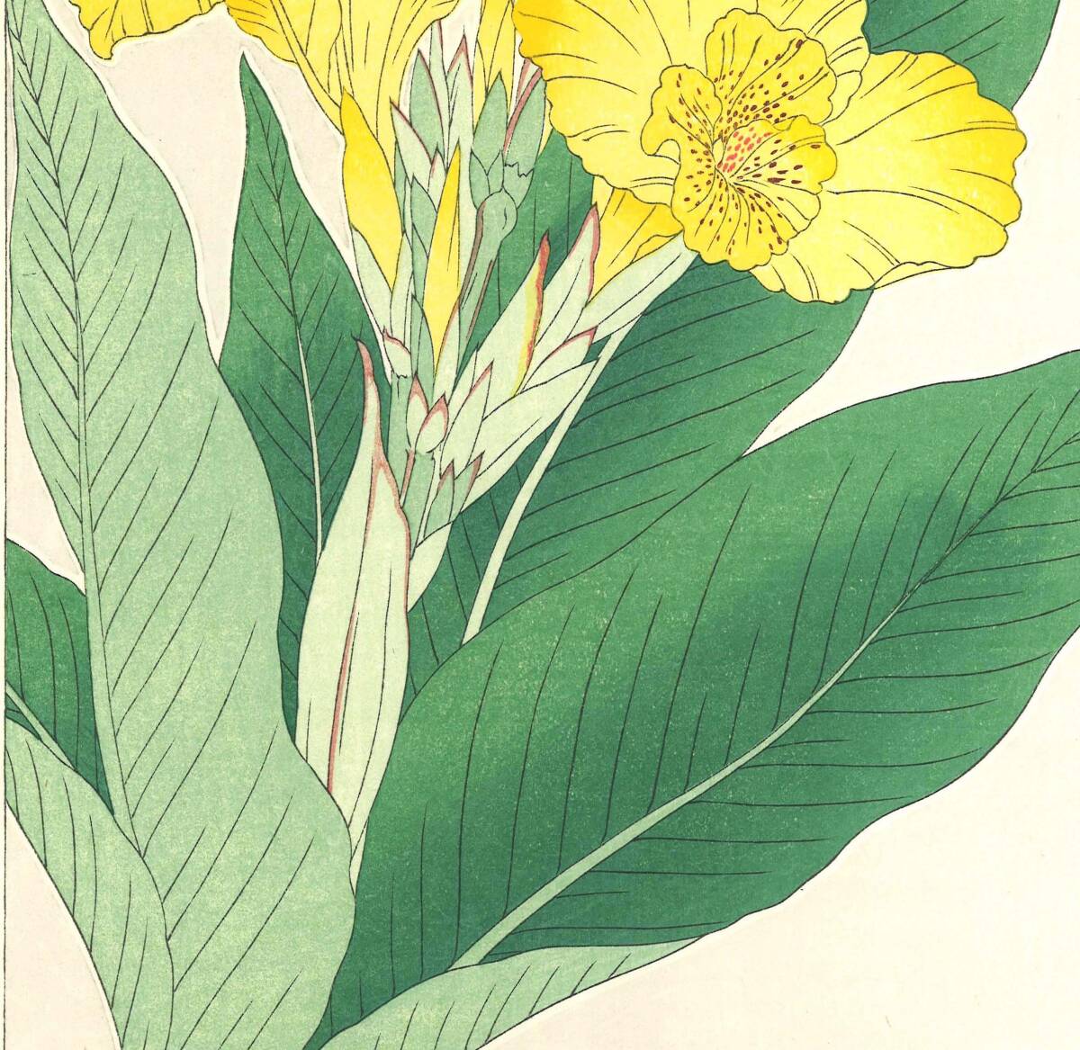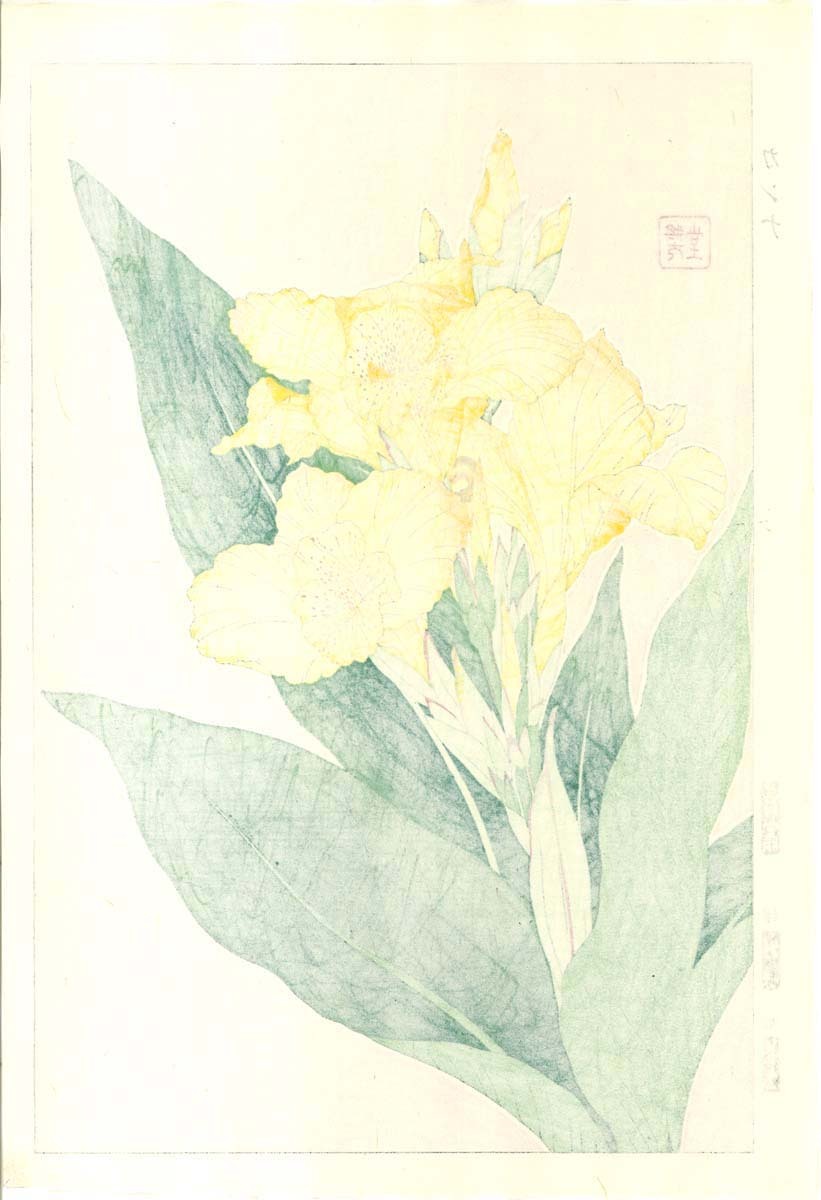 真作保証 額装  河原崎奨堂 木版画   #136 カンナ Canna   初版昭和中期頃   自宅に届いて直ぐに飾れる京都の名品 花版画!!