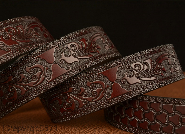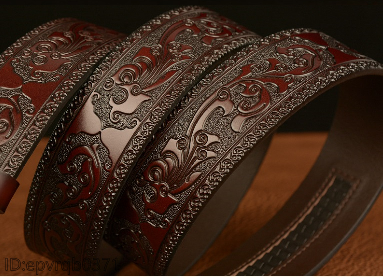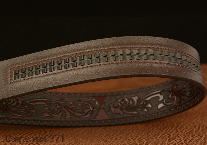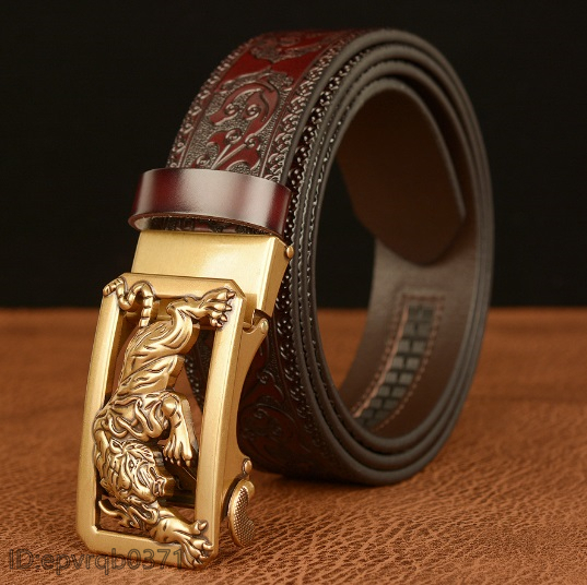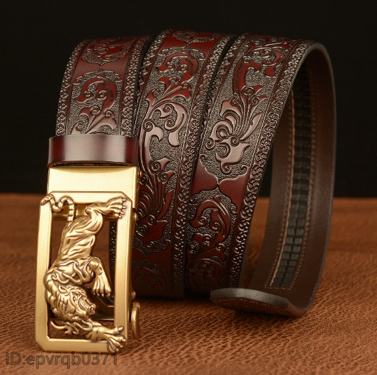 レザーベルト 新品 オートロック式 バックル トラ 本革 メンズ ベル ト 幅3.5センチ 柄物 紳士 長さ調整可能 /茶色