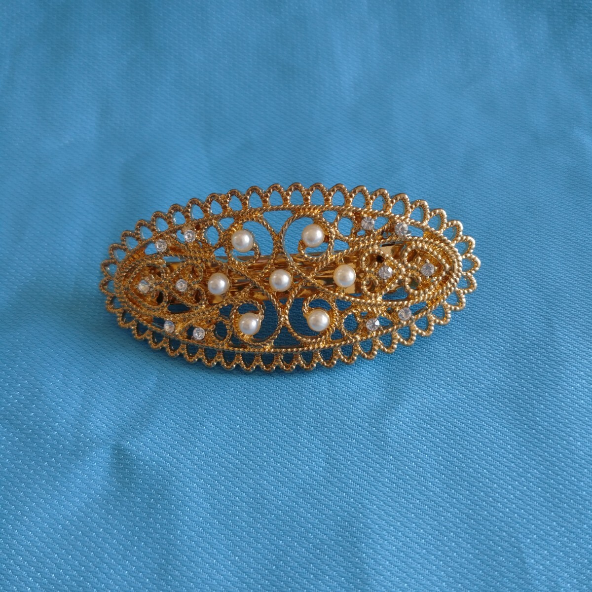 ゴールドパールバレッタフェイクヘアアクセサリー