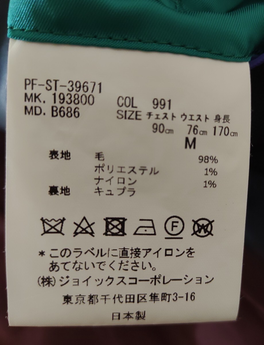 Mサイズで表記されていますが、細身なつくりのため、S相当になると思います。