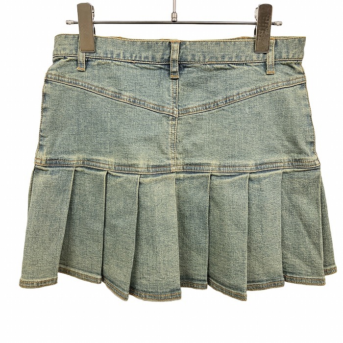商品タイトル | メトリーゼ 【新品】MAITRESSE デニム ミニスカート USED加工 プリーツ フレア 無地 綿×ポリウレタン F ブルー 青×黄 レディース |