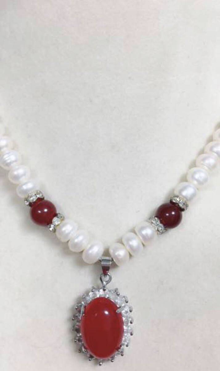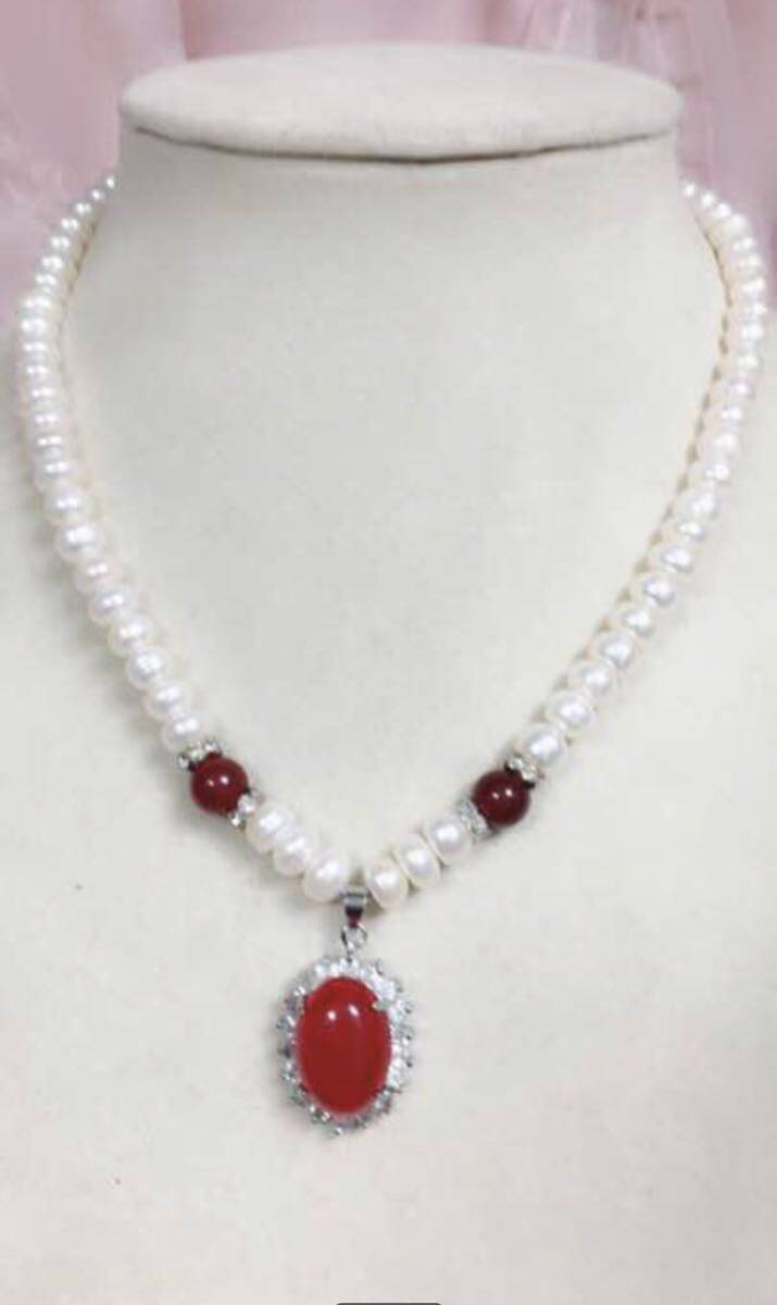 ●商品名:大粒♪天然淡水真珠/ホワイトパールと翡翠ネックレス♪清爽な白真珠