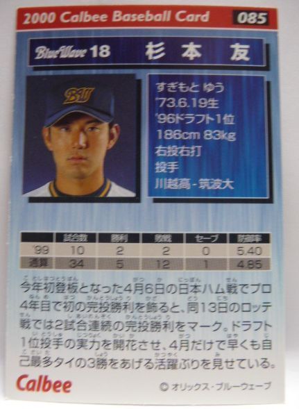 カルビープロ野球カード2000年#085【杉本 友(オリックス ブルーウェーブ)】平成12年チップスおまけ食玩トレーディングカード【中古】送料込