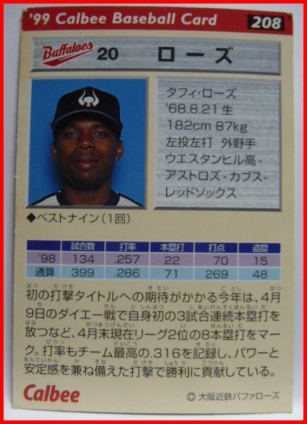 カルビープロ野球カード99年#208【ローズ(大阪 近鉄バファローズ)】平成11年1999年チップスおまけ食玩トレーディングカード【中古】送料込