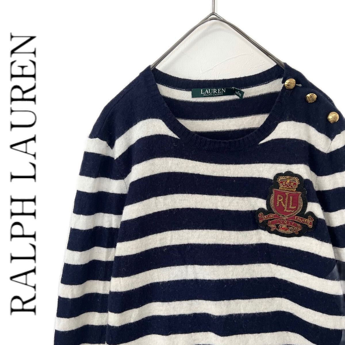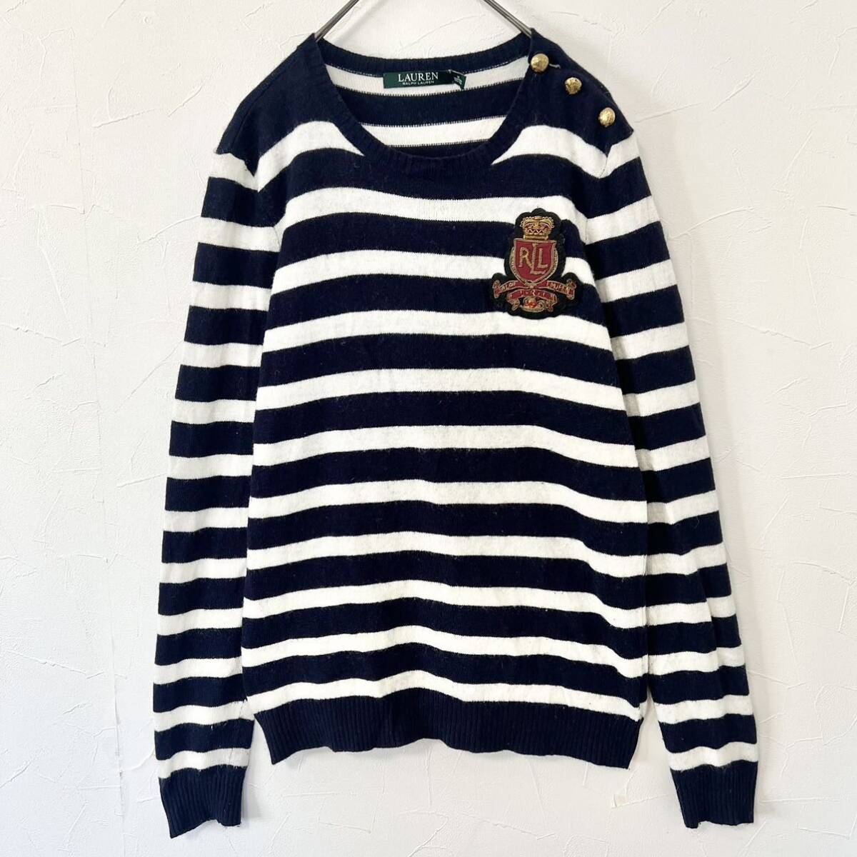 《デザイン》金ボタン ニット セーター ボーダー レディース ワッペン