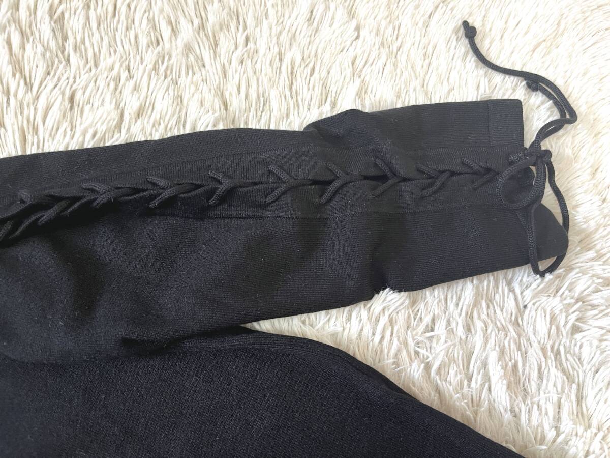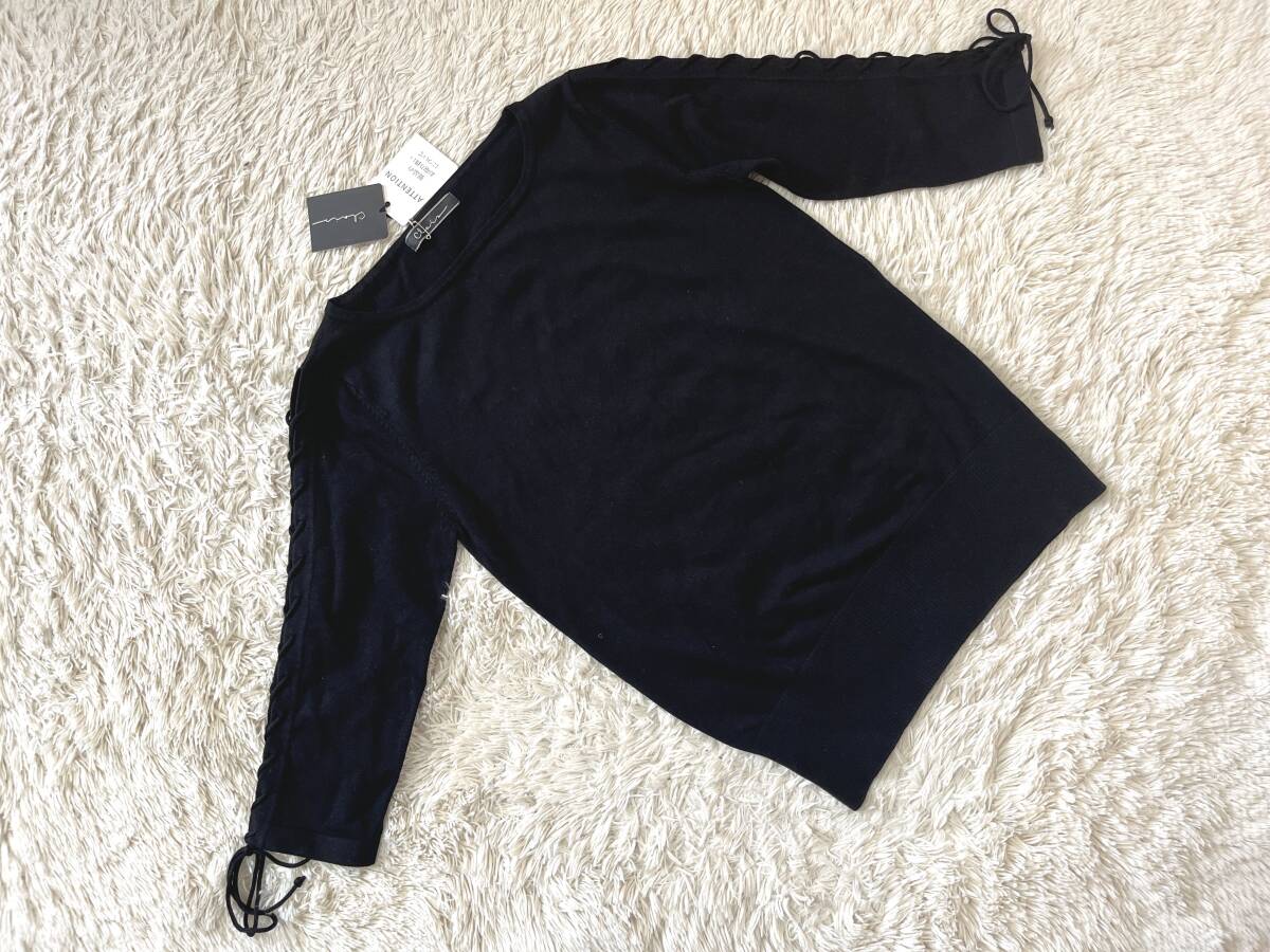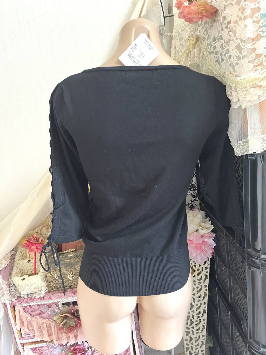 レディース01サイズ:ウィディ◆袖上編み上げオープン*ニット:ブラック