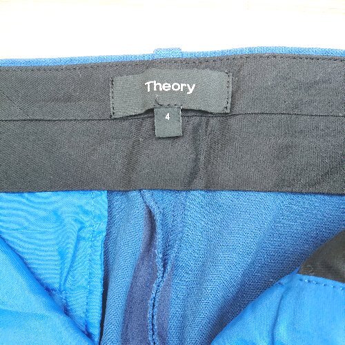 ◇ Theory セオリー シンプル 無地 ストレッチ テーパード クロップド パンツ サイズ4 ブルー レディース E