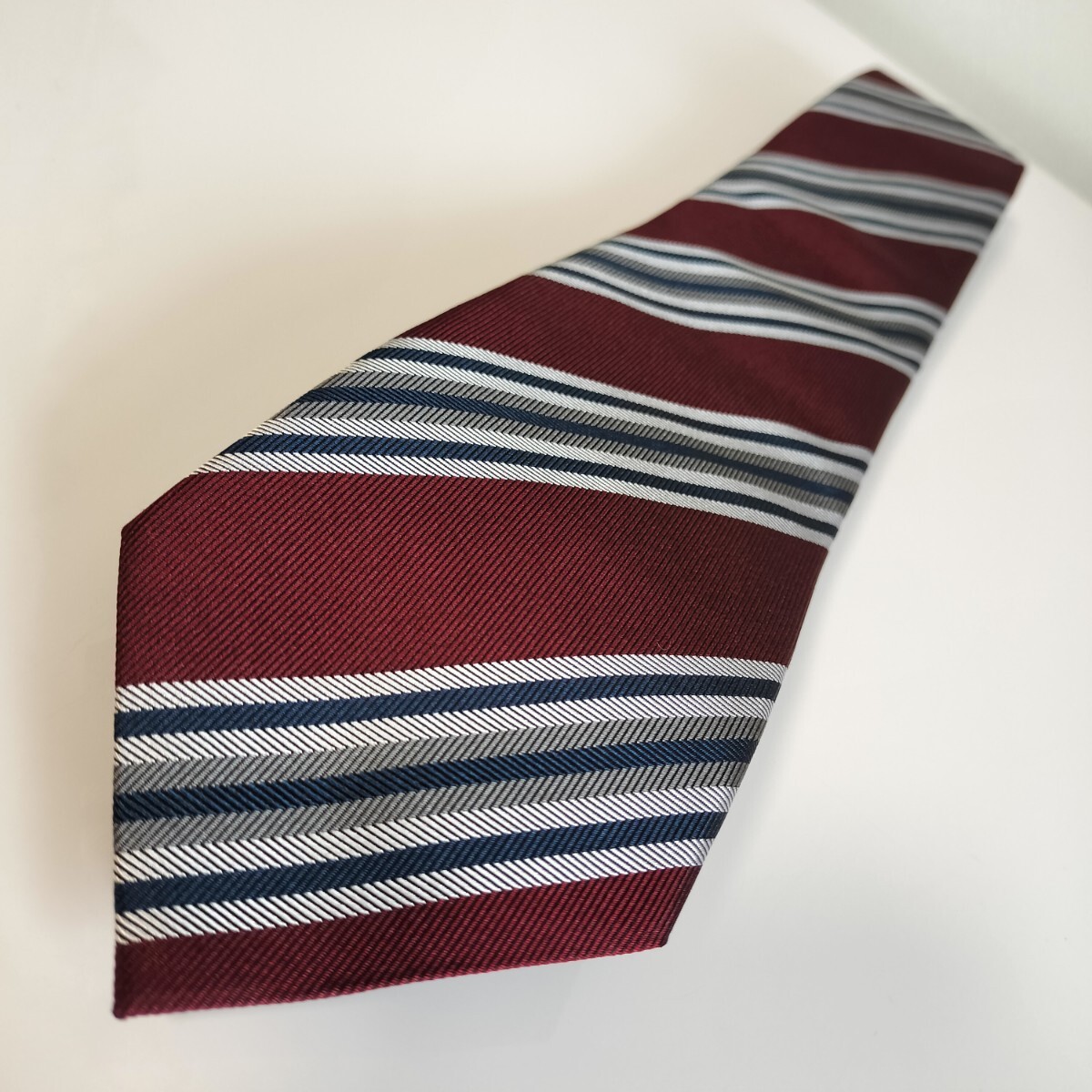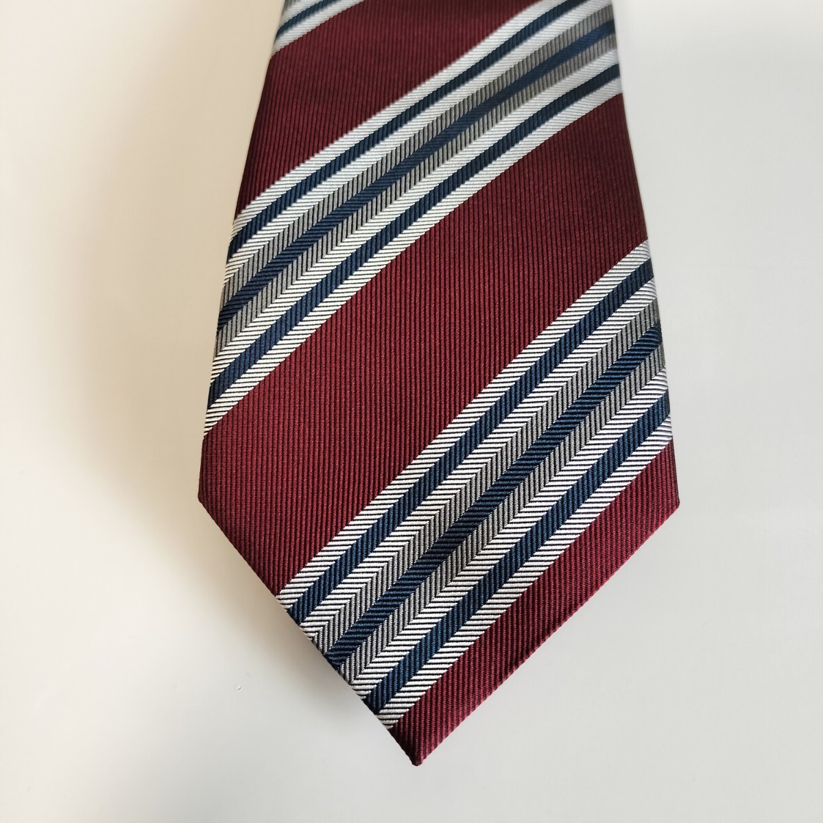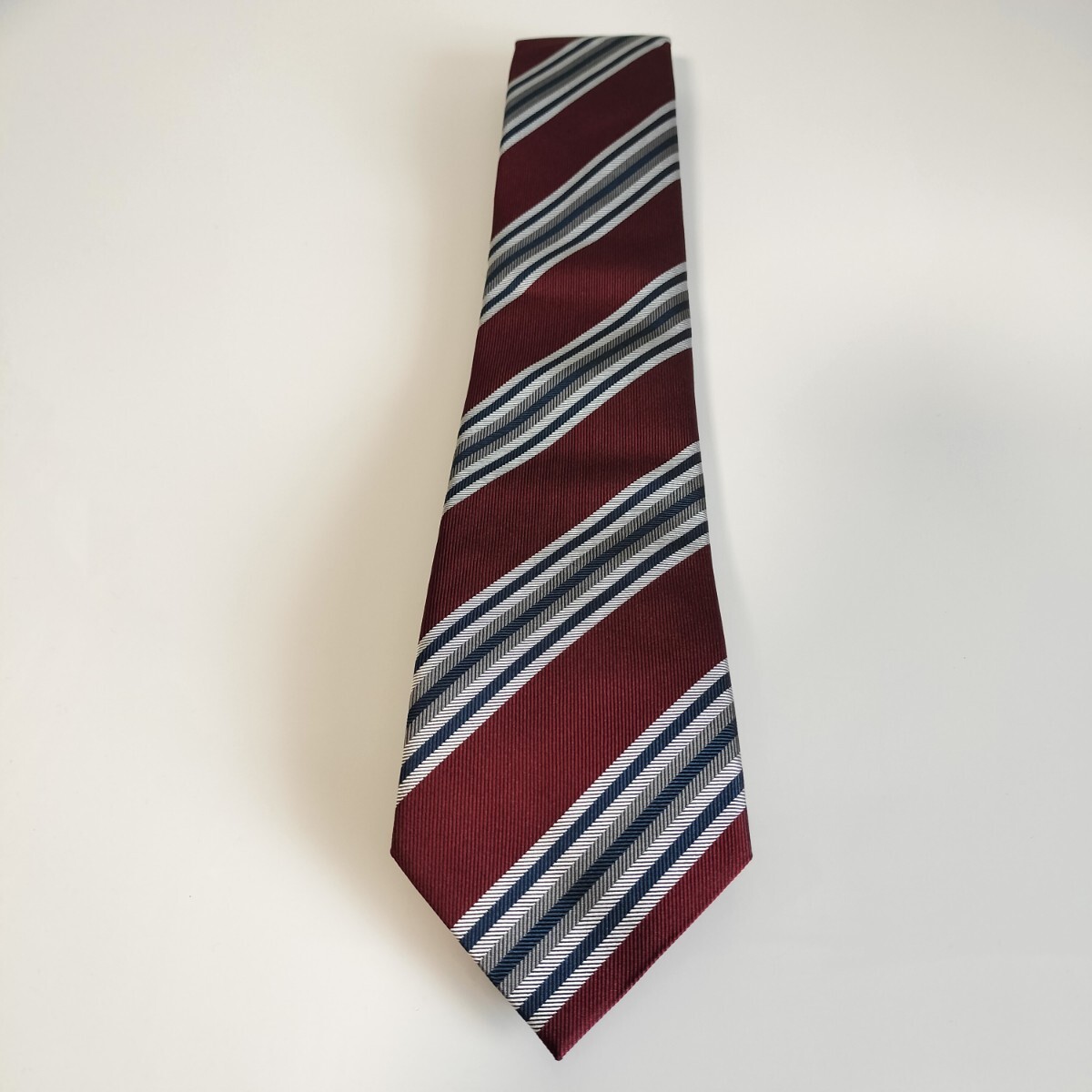 ワインレッド紺灰色ストライプネクタイ