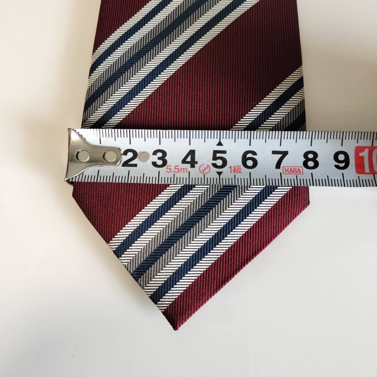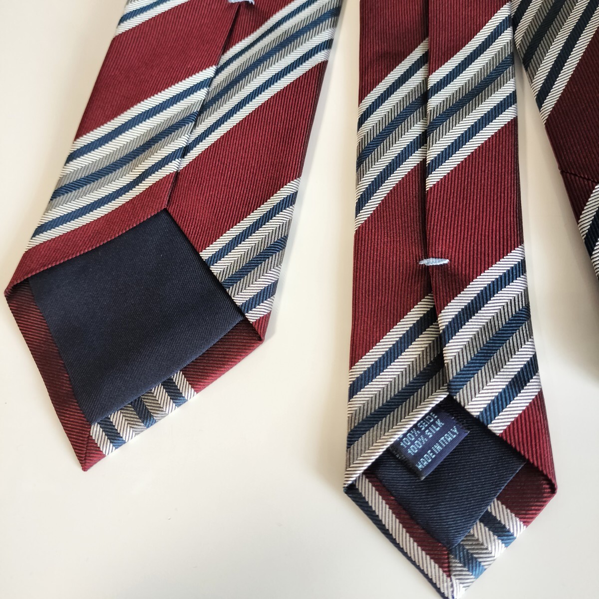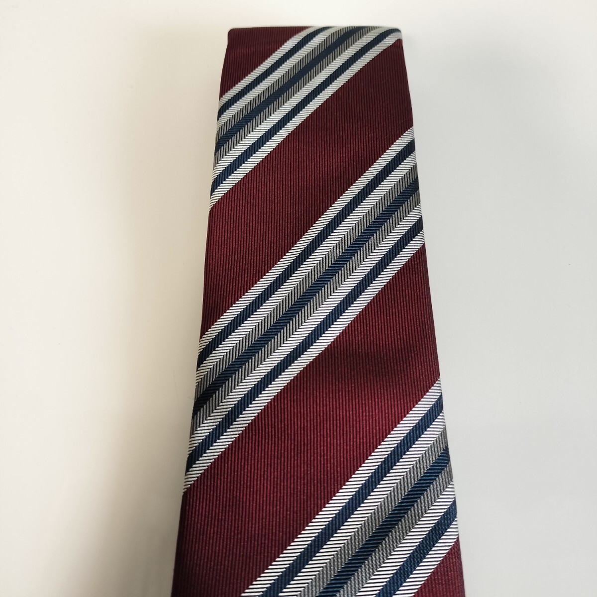 ワインレッド紺灰色ストライプネクタイ